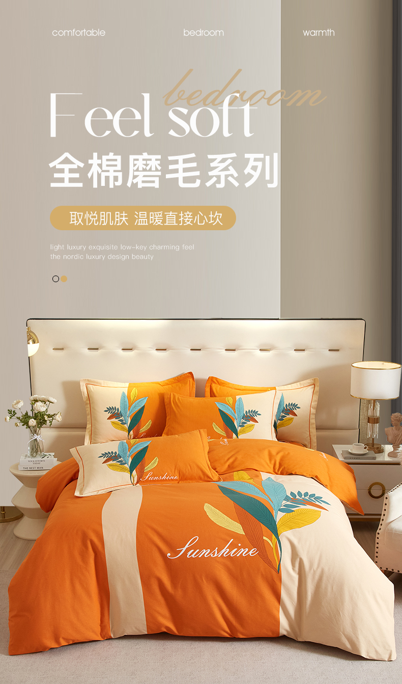 商品名称:格里芬家纺 2025新款全棉加厚大版磨毛纯棉磨毛四件套 金枝玉叶