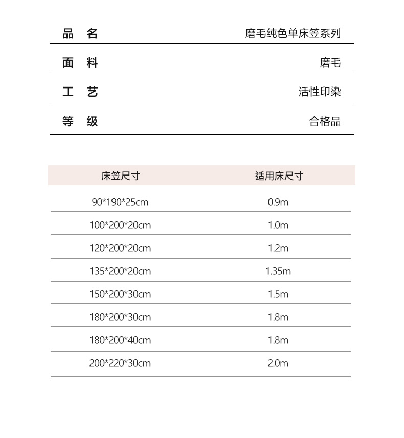 床单/床笠尺寸 8