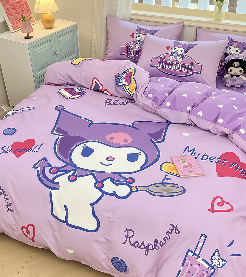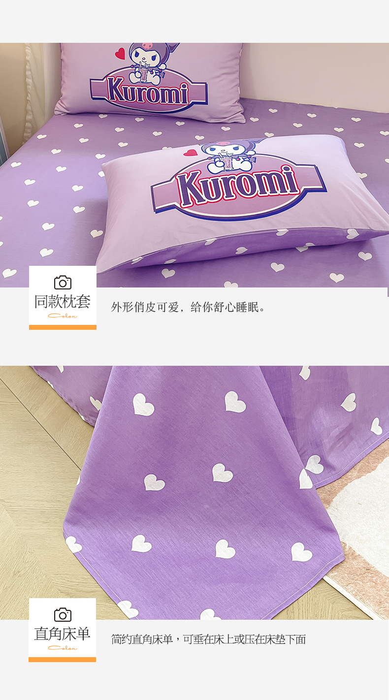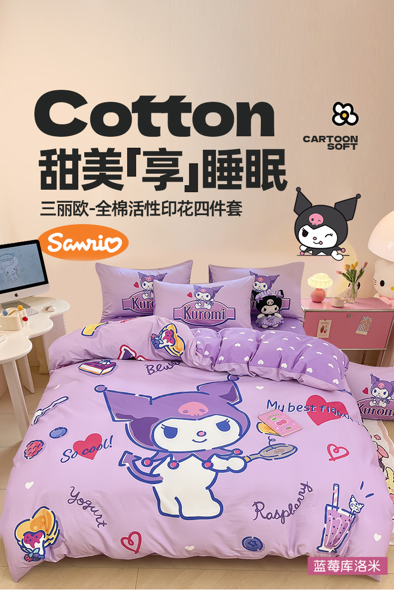 当前位置: 91家纺网 > 商品网购 > 床品套件 > 四件套 > 全棉普通四件套 > 桃子家居 2024纯棉大版三丽鸥卡通平网印花系列四件套 棉大版-D蓝莓库洛米