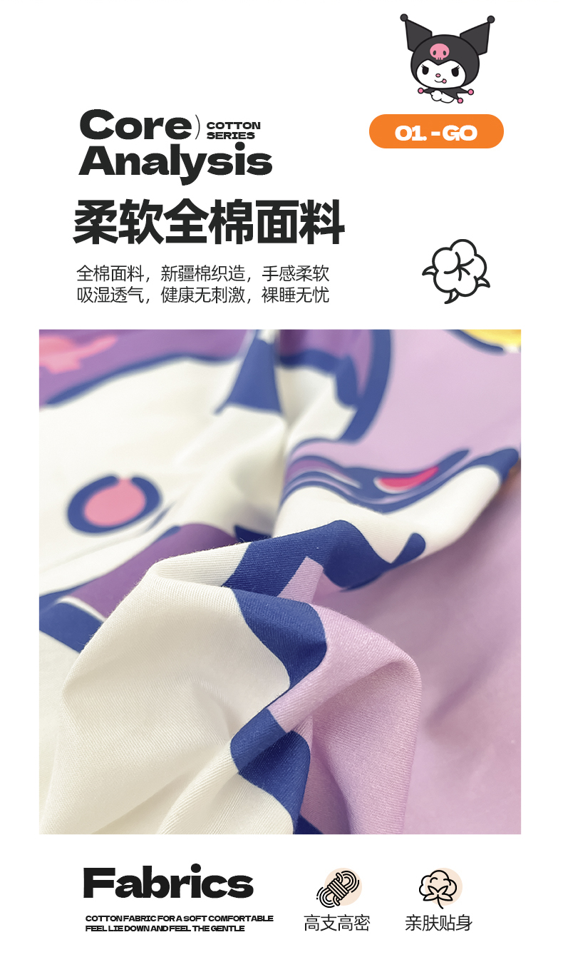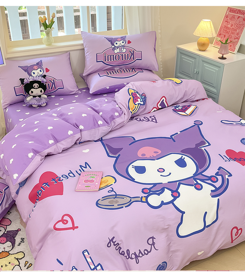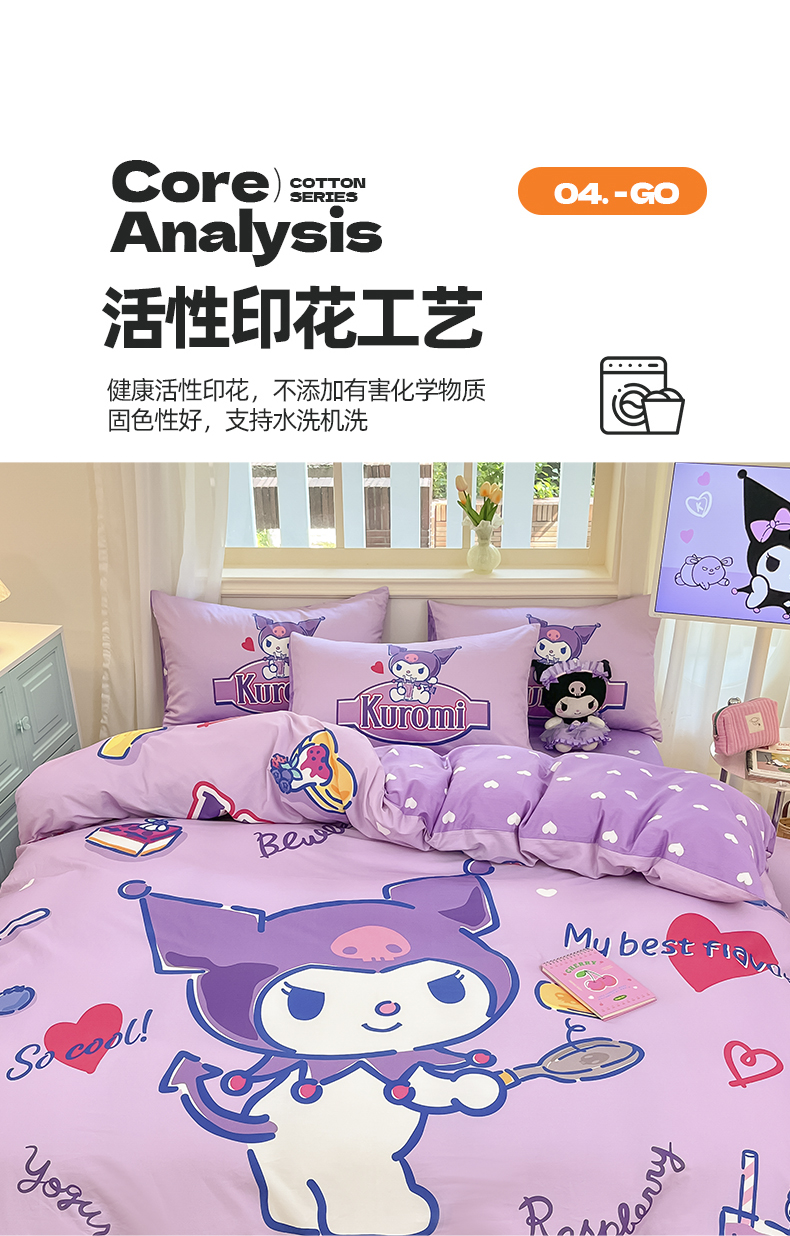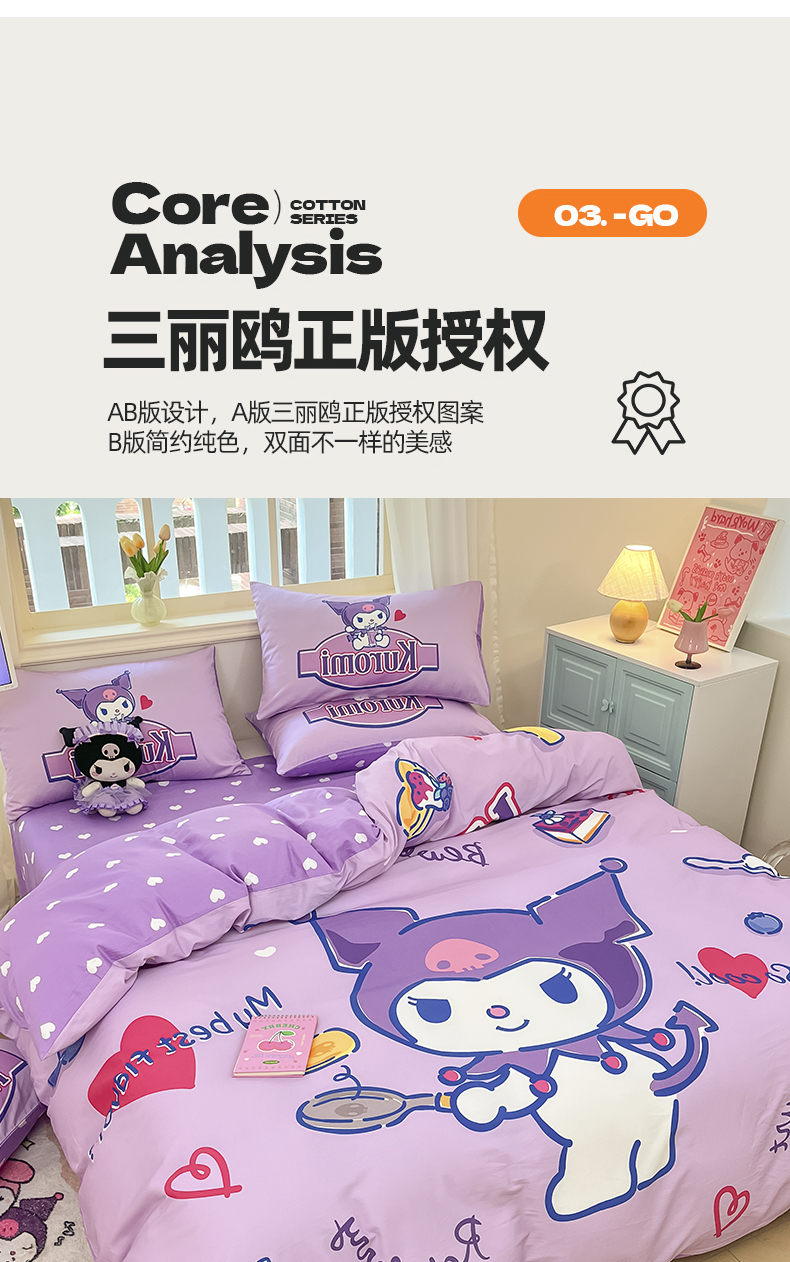 当前位置: 91家纺网 > 商品网购 > 床品套件 > 四件套 > 全棉普通四件套 > 桃子家居 2024纯棉大版三丽鸥卡通平网印花系列四件套 棉大版-D蓝莓库洛米