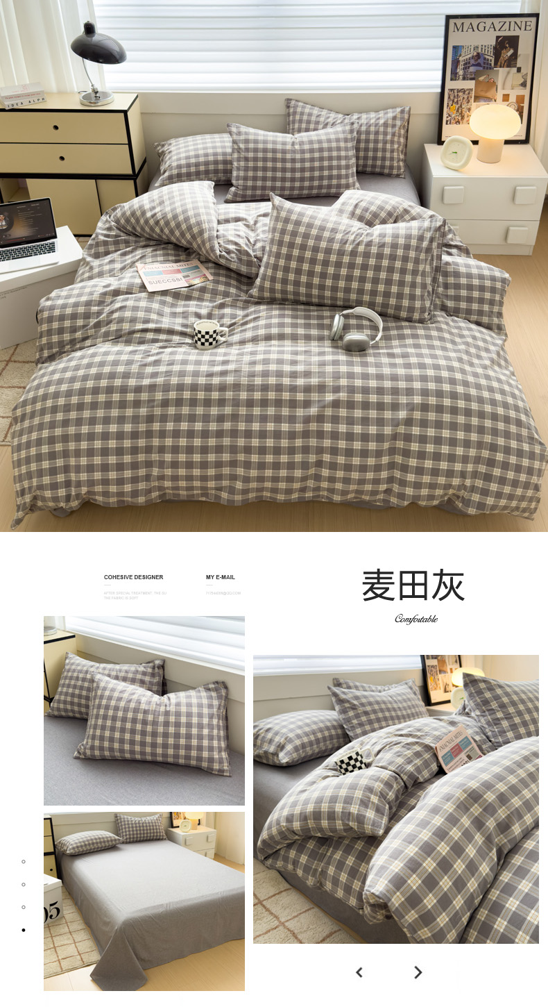 商品名称:星尚家纺 2024新款全棉色织水洗棉学生三件套 麦田灰