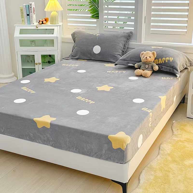锦罗绣 2024新款A类高克重牛奶绒印花单床笠 星星
