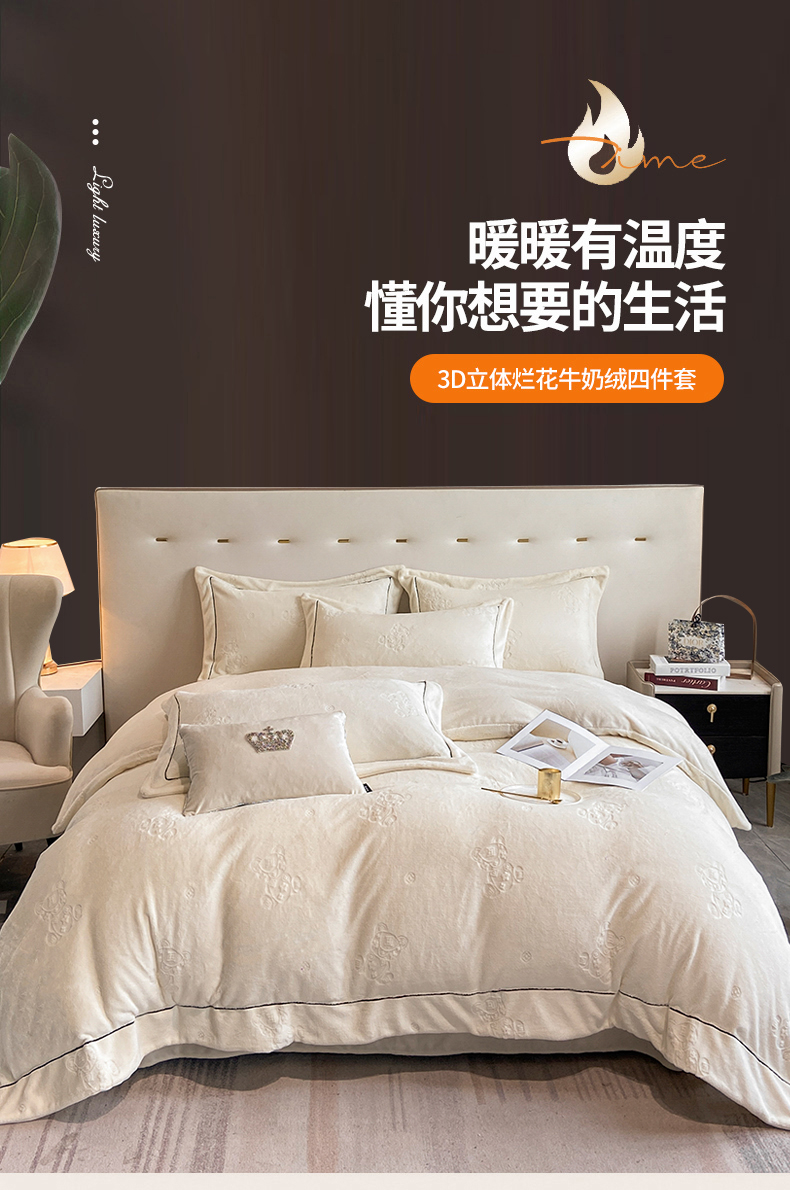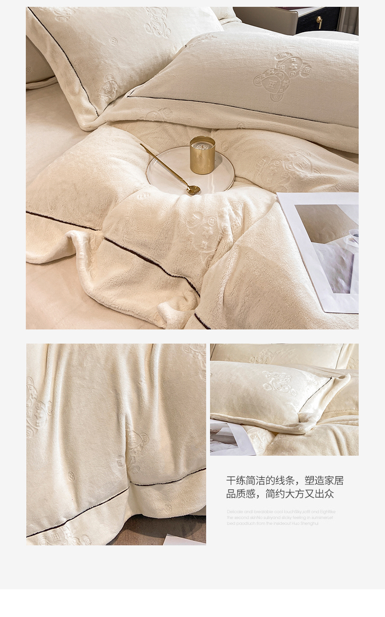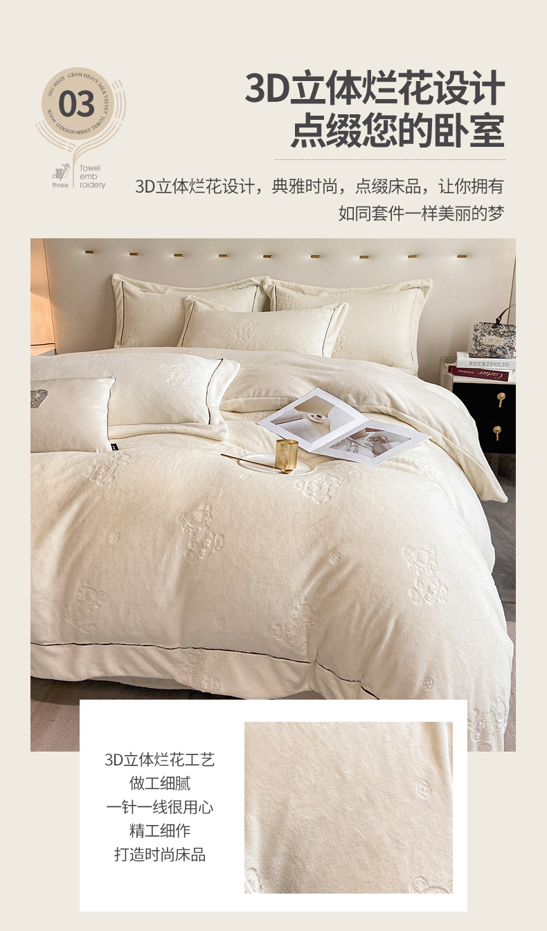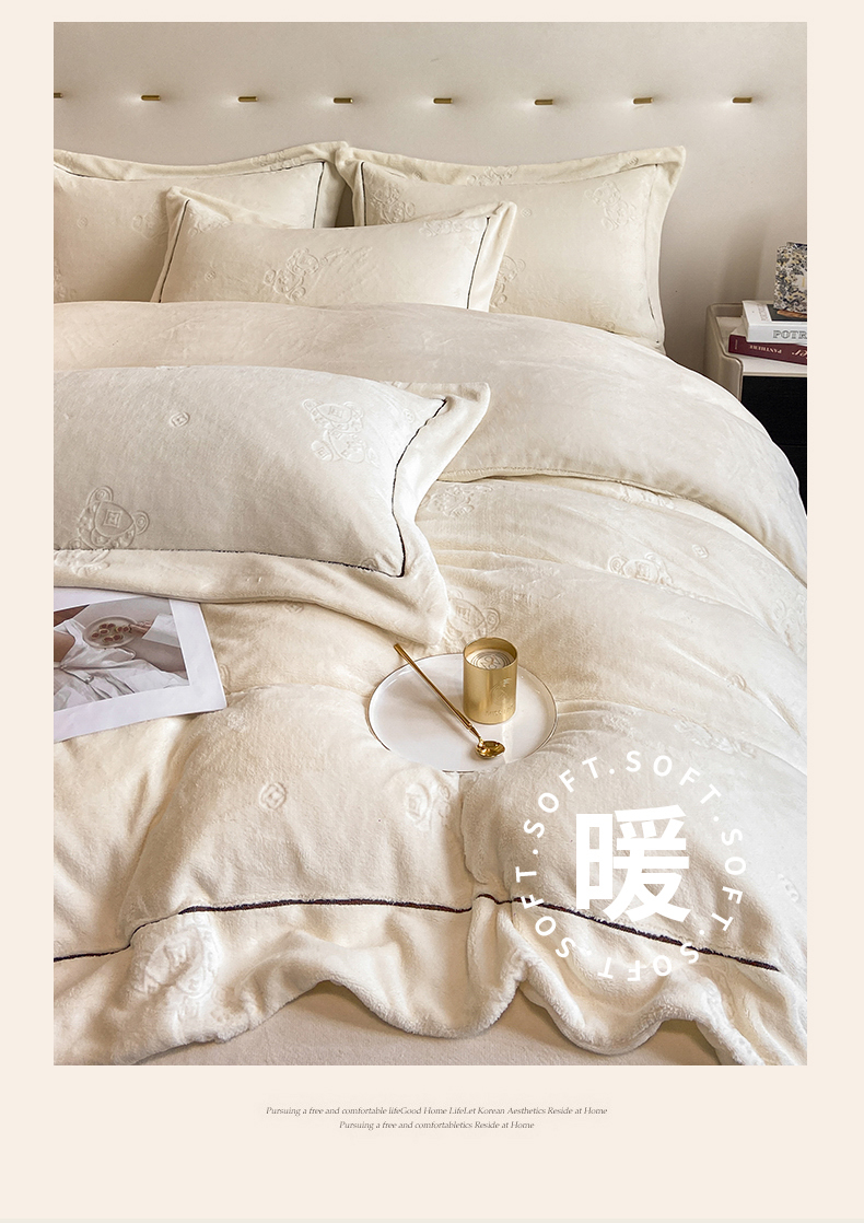 商品名称:(总)经年 2025年新款210克全消光A类烂花牛奶绒四件套-小熊系列