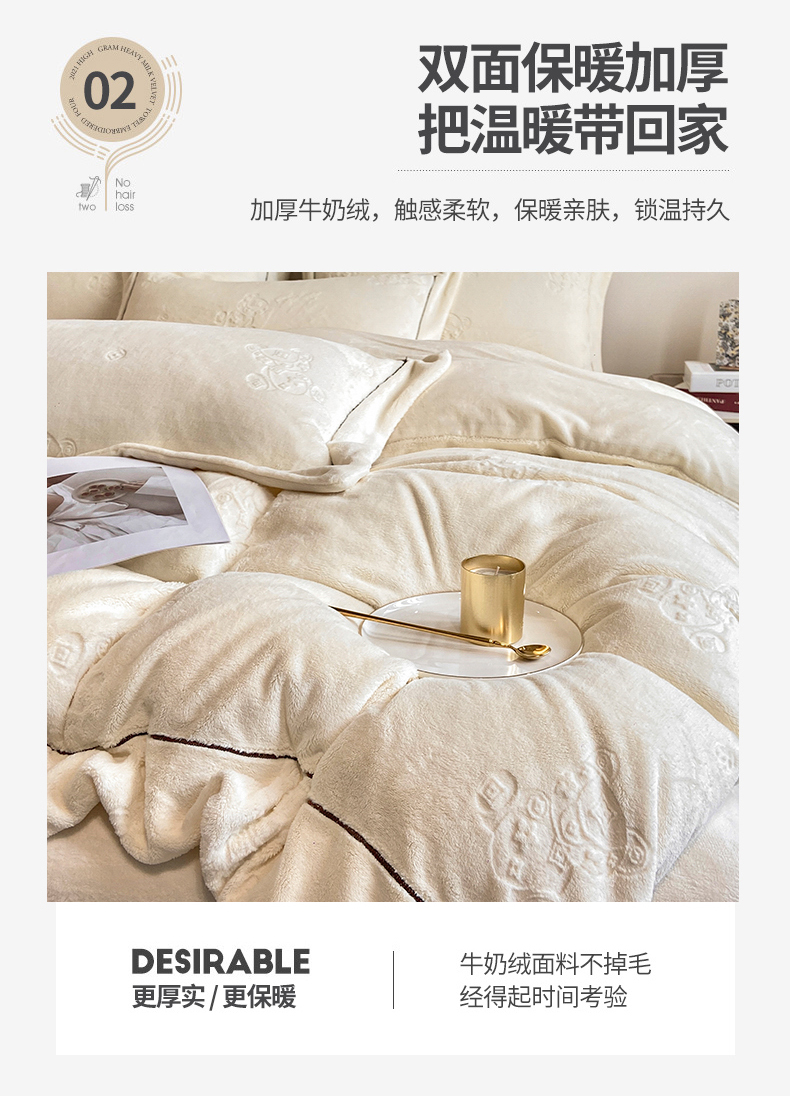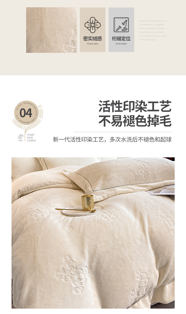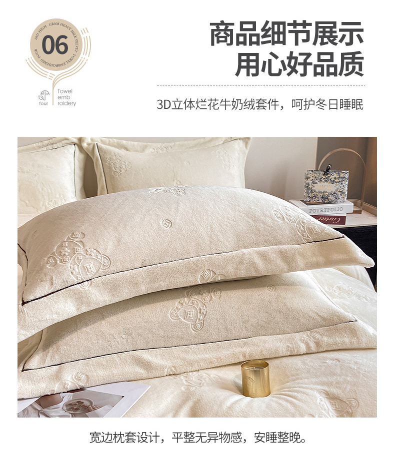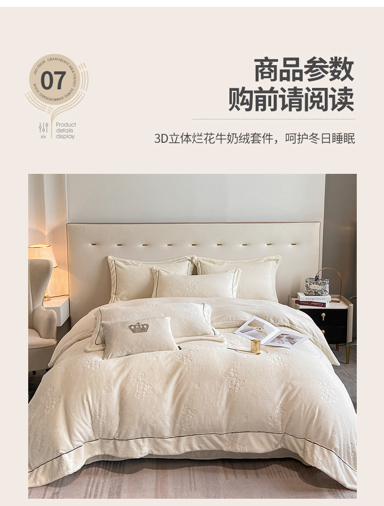 商品名称:(总)经年 2025年新款210克全消光A类烂花牛奶绒四件套-小熊系列