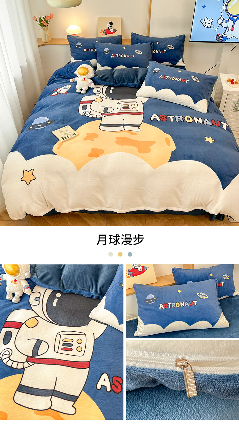 当前位置: 91家纺网 > 商品网购 > 床品套件 > 四件套 > 牛奶绒四件套 > 孩子王家纺 2025新款专版花色太空人大版卡通学生宿舍双面加厚牛奶绒系列四件套--提供买家秀 月球漫步
