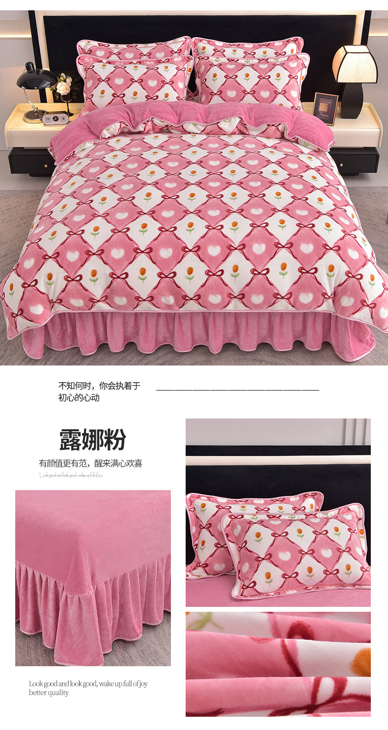 商品名称:佳品居 2025新款8斤床裙款牛奶绒四件套 露娜粉