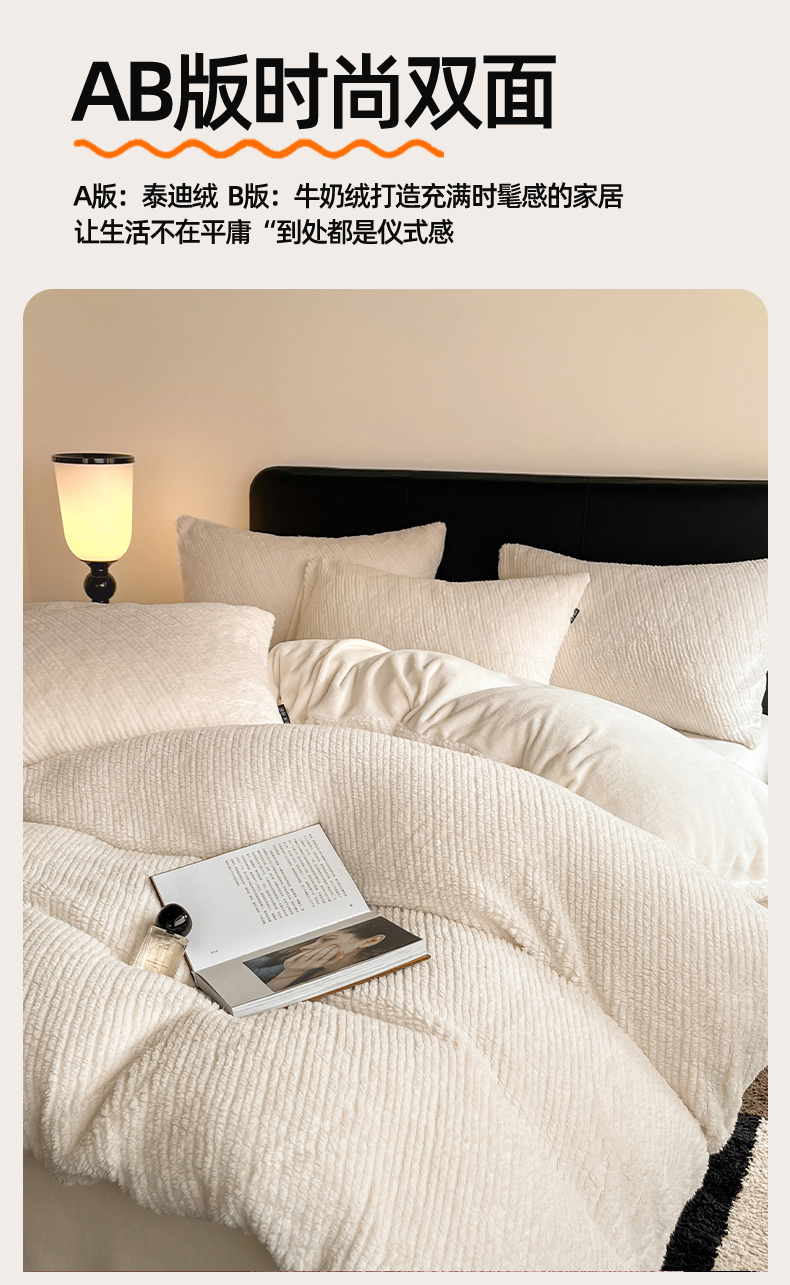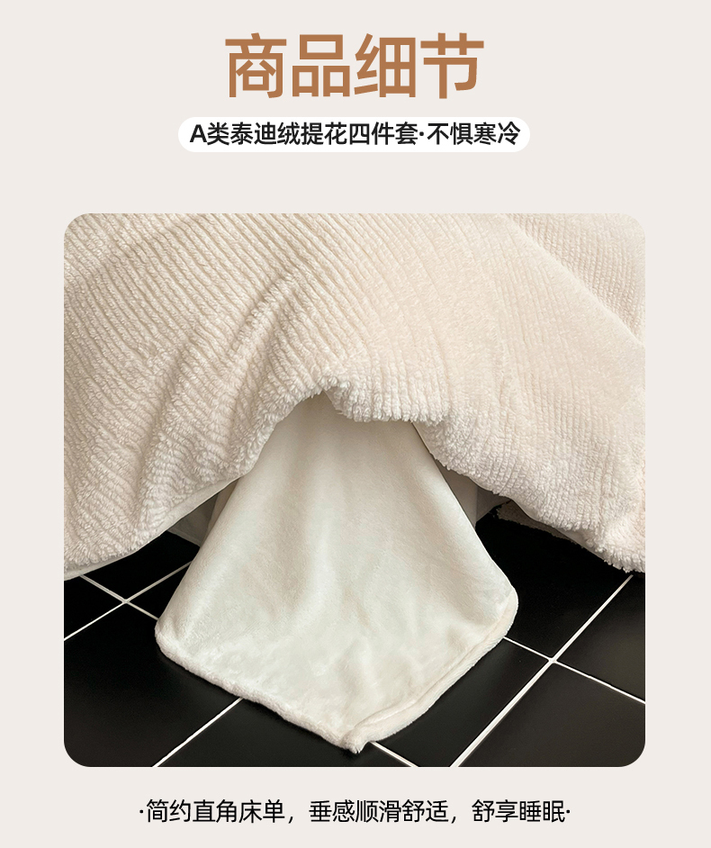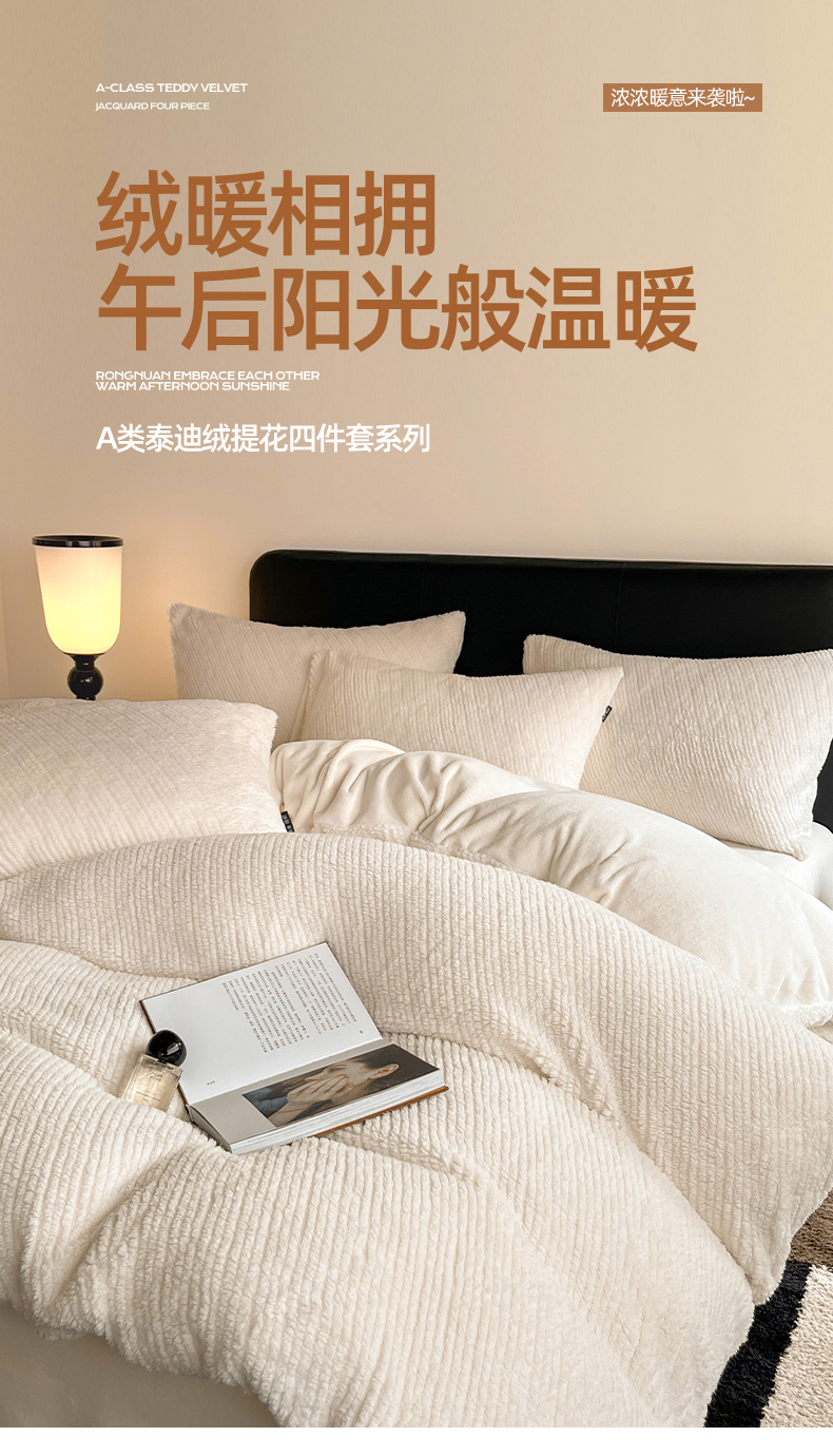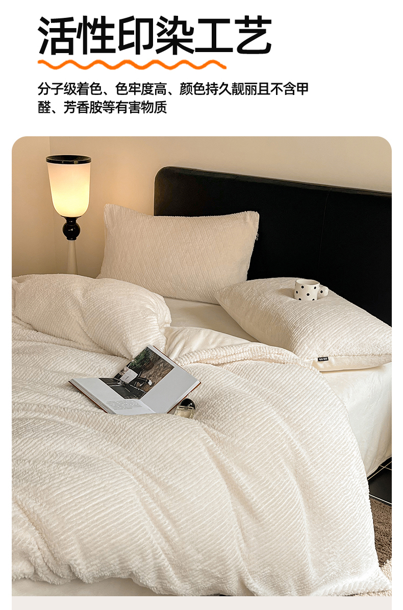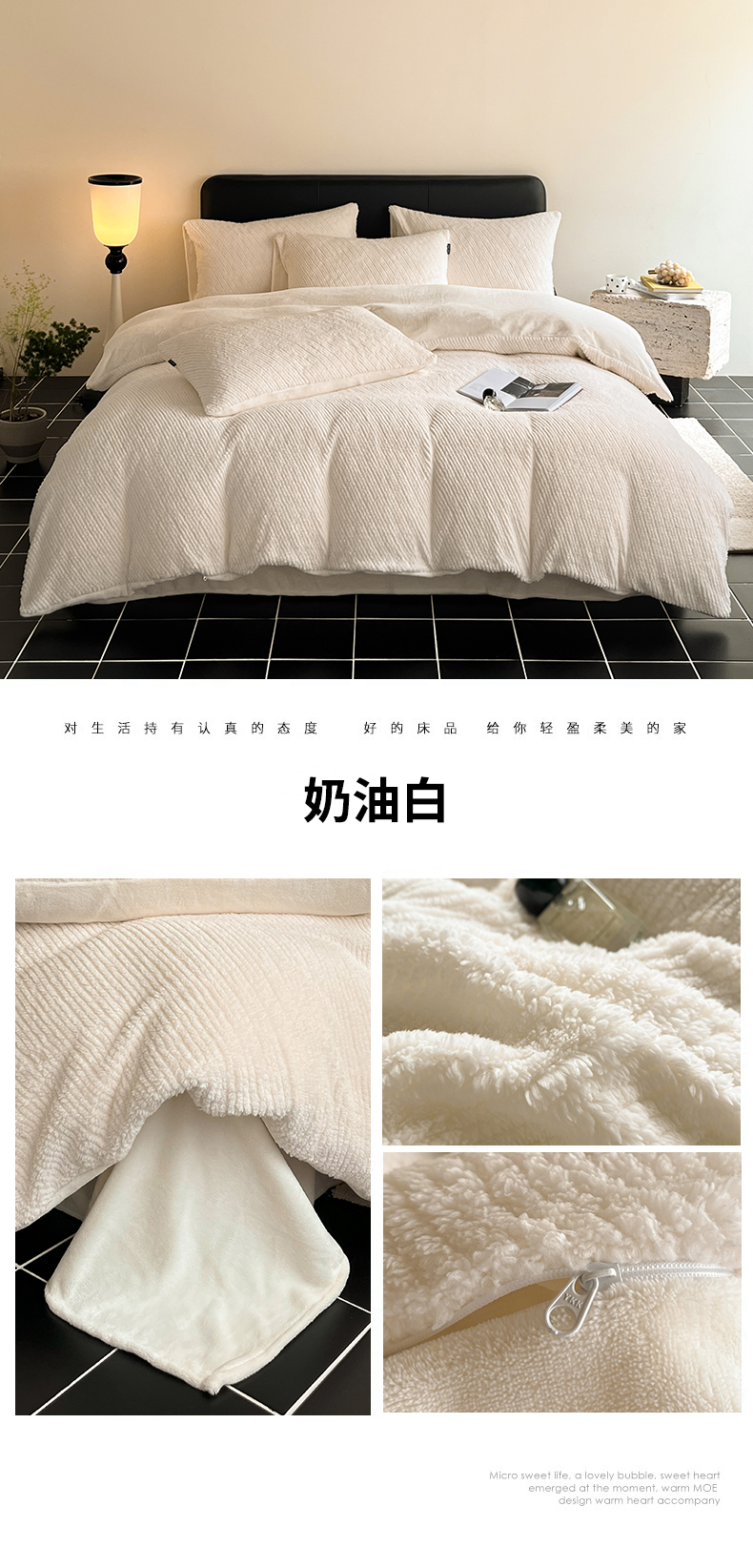 商品名称:星座家纺 2025新款泰迪绒提花牛奶绒四件套 奶油白