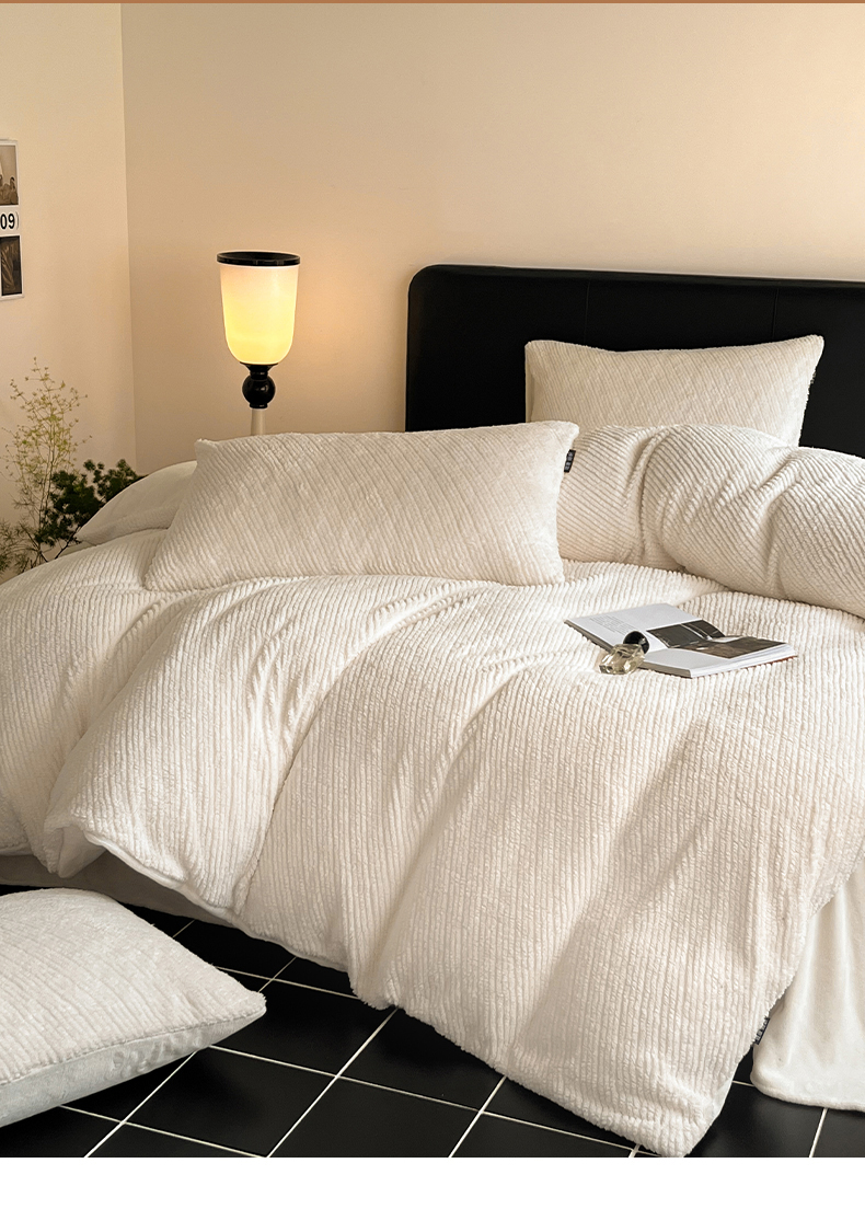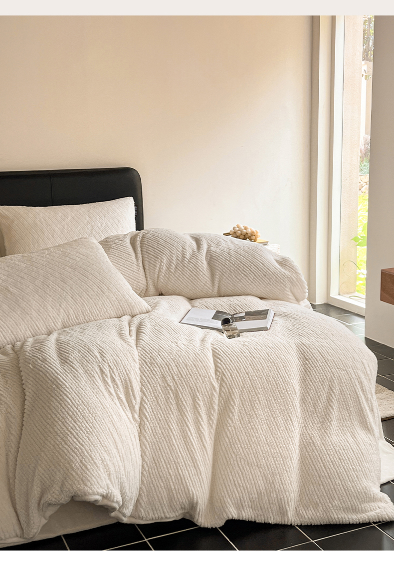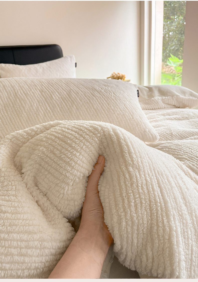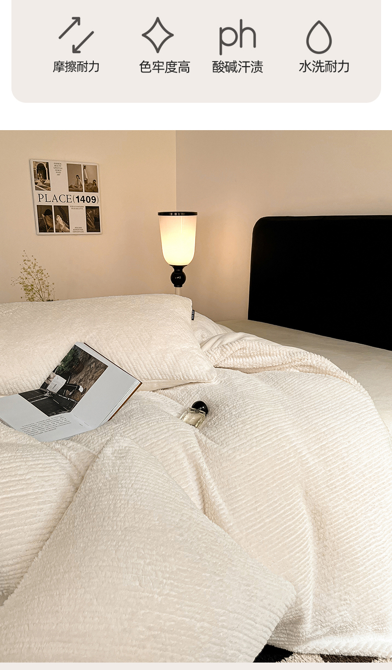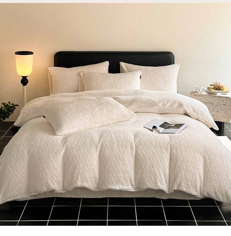 星座家纺 2025新款泰迪绒提花牛奶绒四件套 奶油白