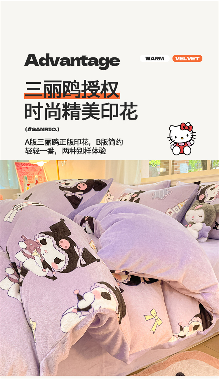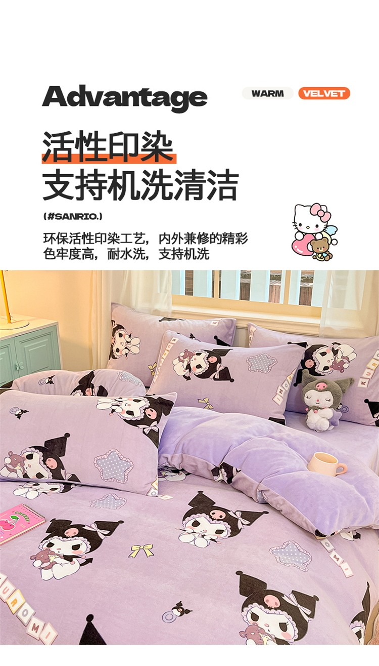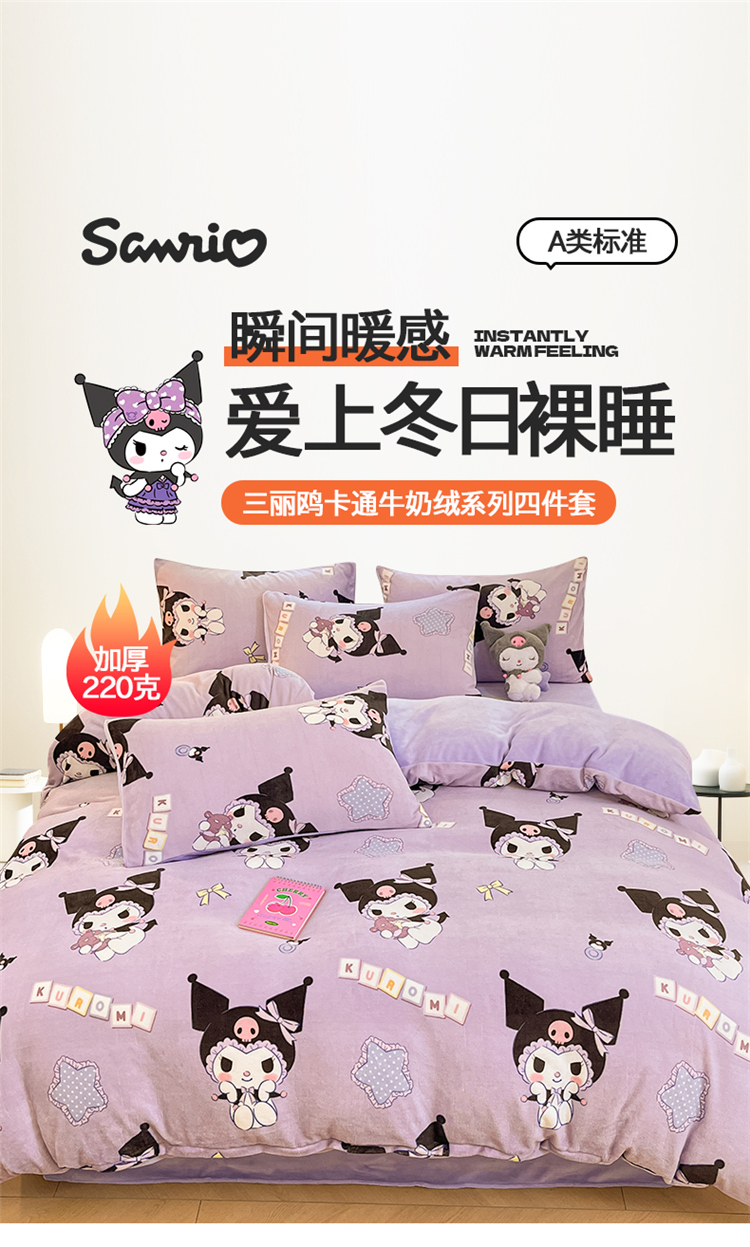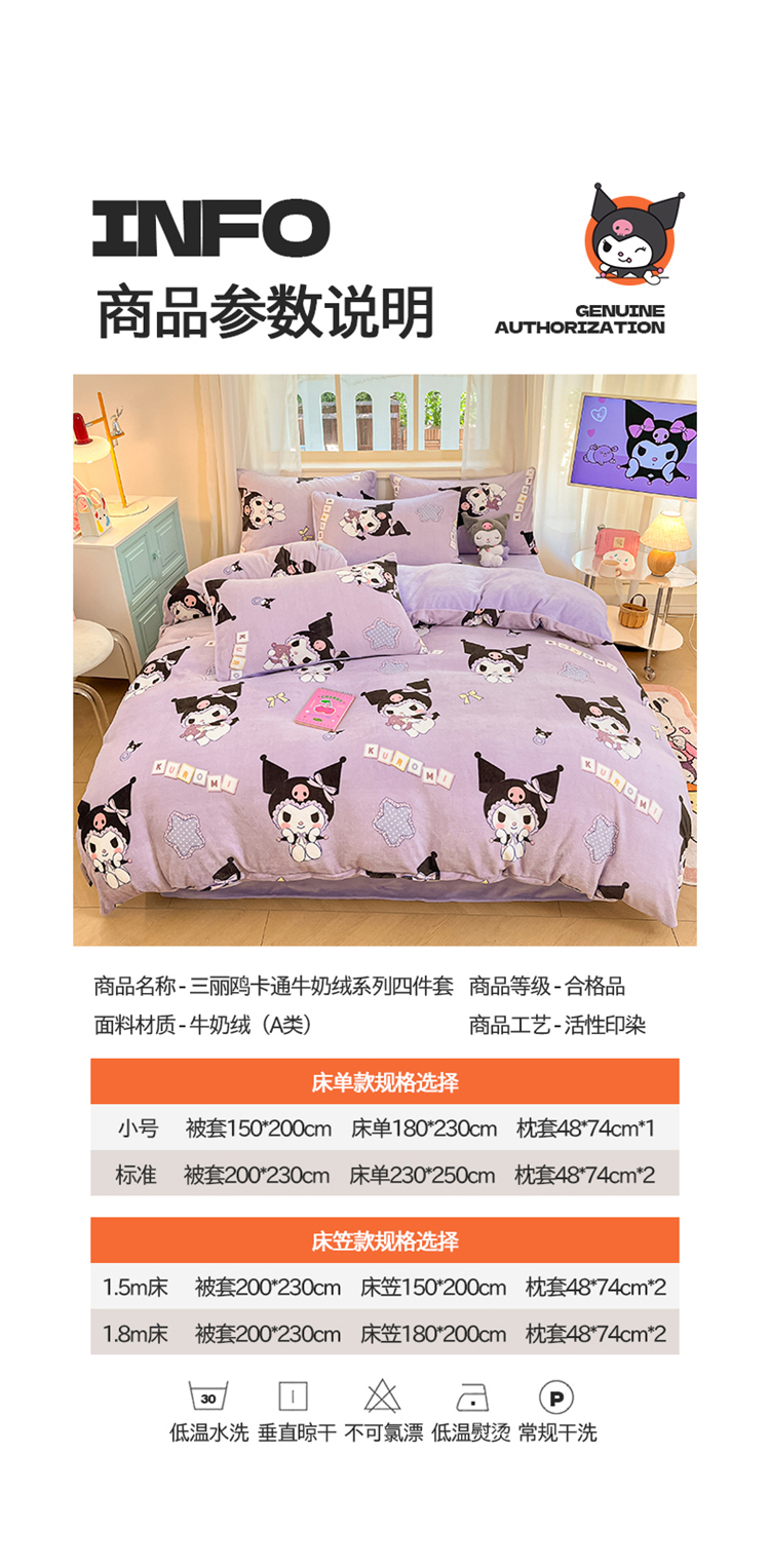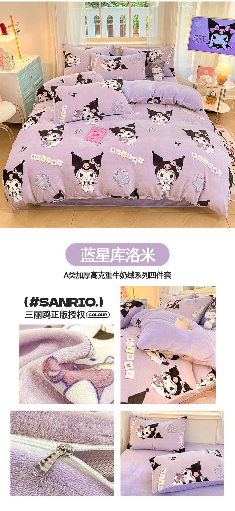 当前位置: 91家纺网 > 商品网购 > 床品套件 > 四件套 > 牛奶绒四件套 > 2024新品正版三丽鸥授权卡通加厚高克重牛奶绒系列四件套 绒三丽鸥-蓝星库洛米