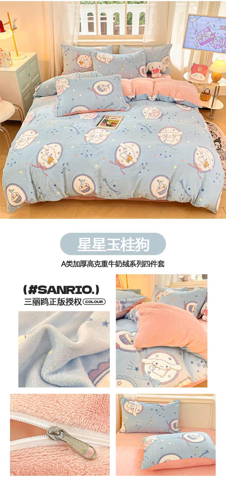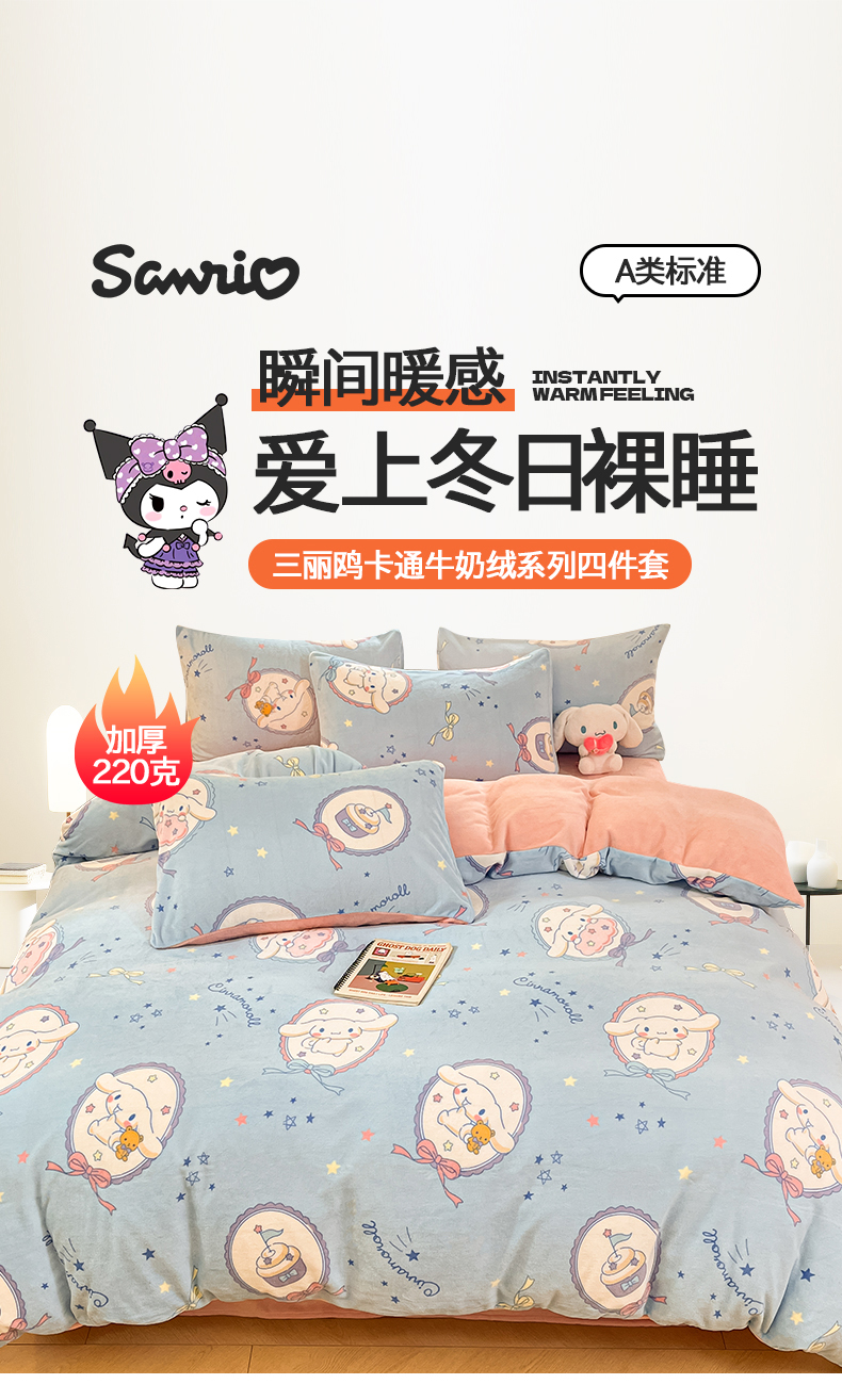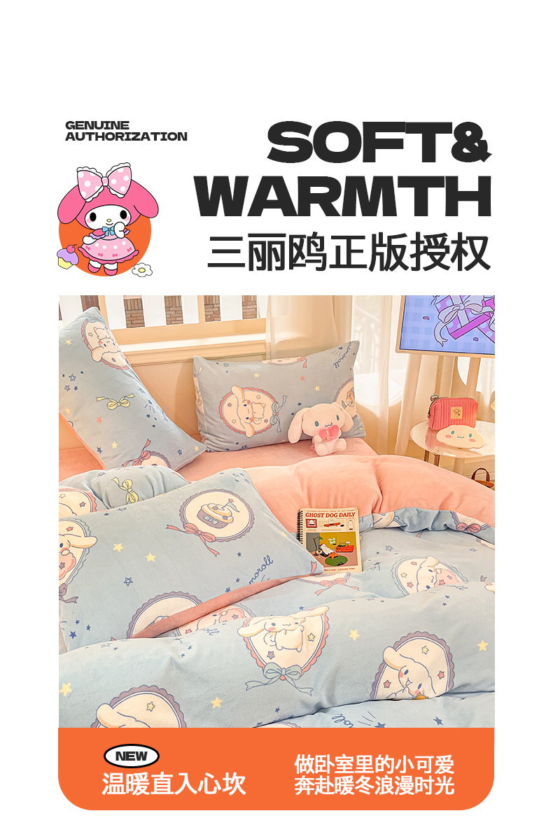 当前位置: 91家纺网 > 商品网购 > 床品套件 > 四件套 > 牛奶绒四件套 > 2024新品正版三丽鸥授权卡通加厚高克重牛奶绒系列四件套 绒三丽鸥-星星玉桂狗