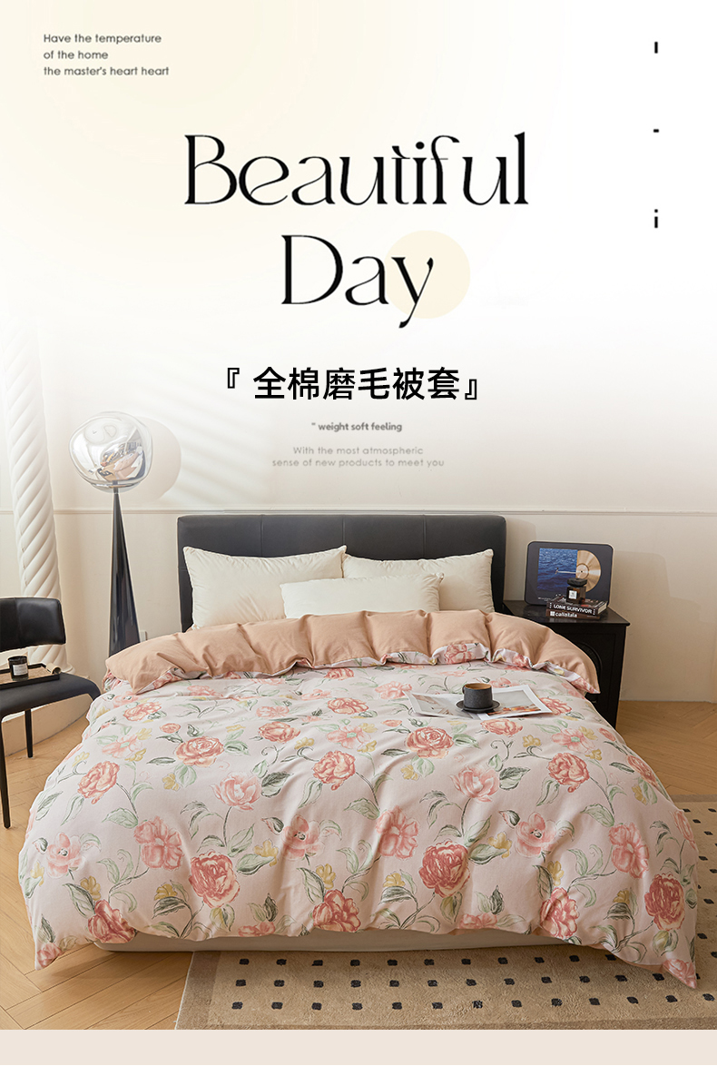商品名称:缦彩 (支持一件定制)2024新款全棉被套加厚生态磨毛学生单被套纯棉被罩 抒情花季-粉