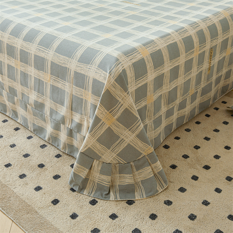 (总)缦彩 2025新款纯棉水洗棉床裙床罩单件全棉防滑防尘保护套床单三件套,艾米-粉,艾米-咖,艾米-兰,多芬桔,扶摇粉,欧风粉,品格-绿,奇兰灰,深情桔
