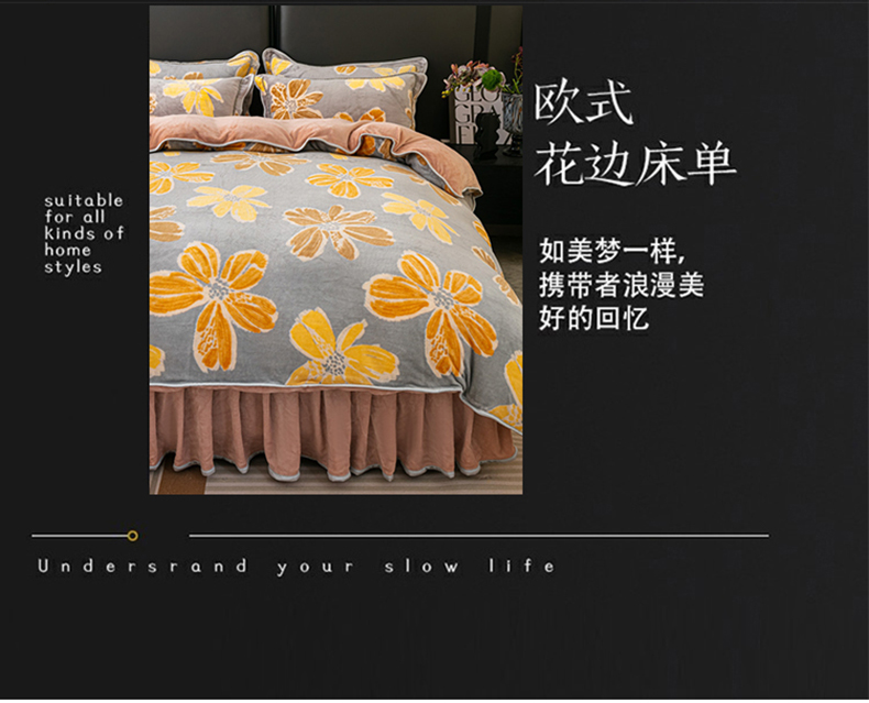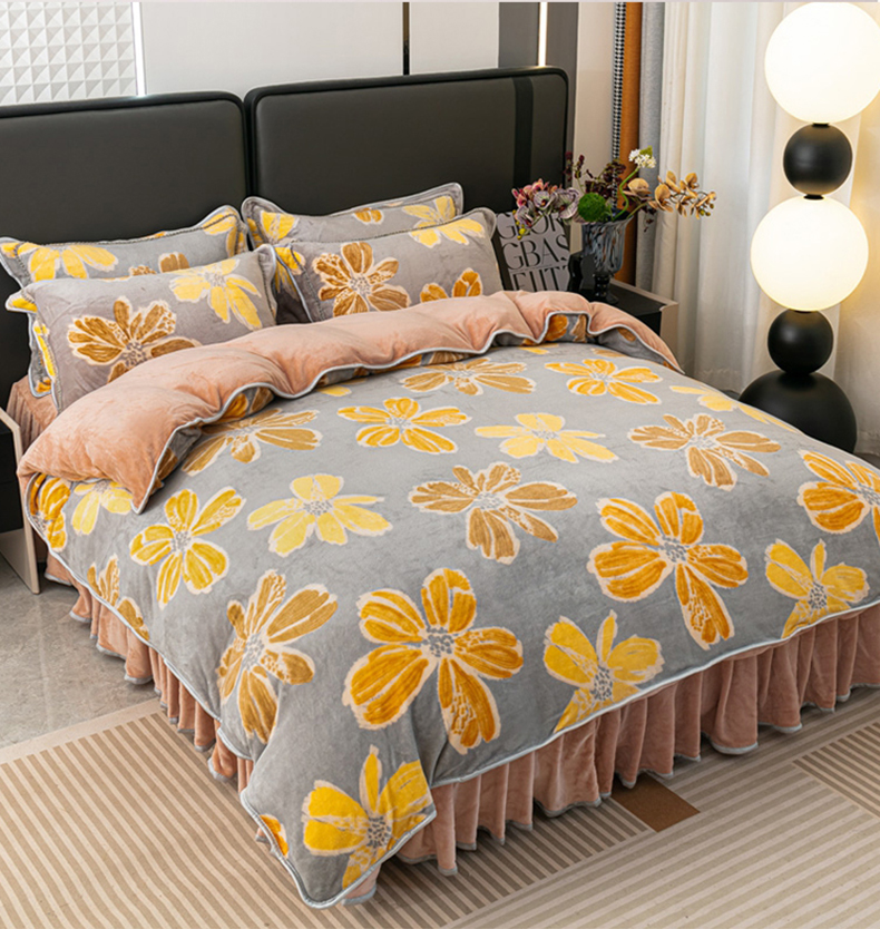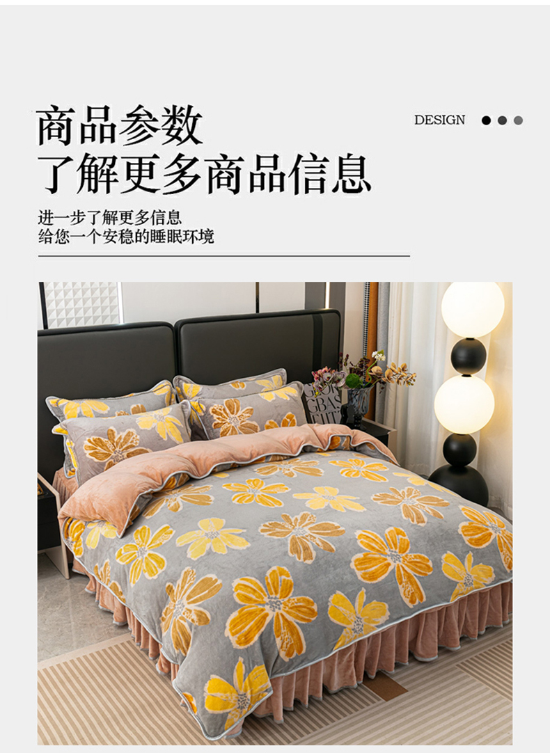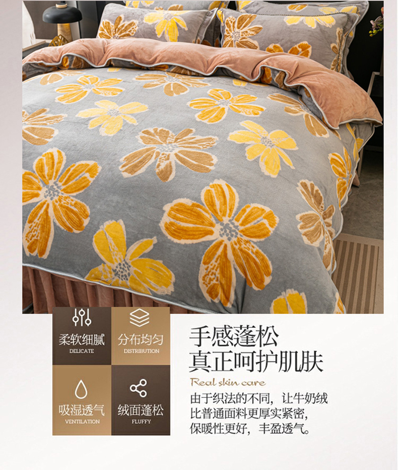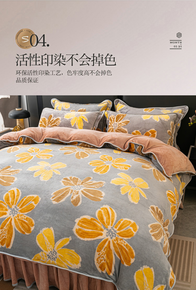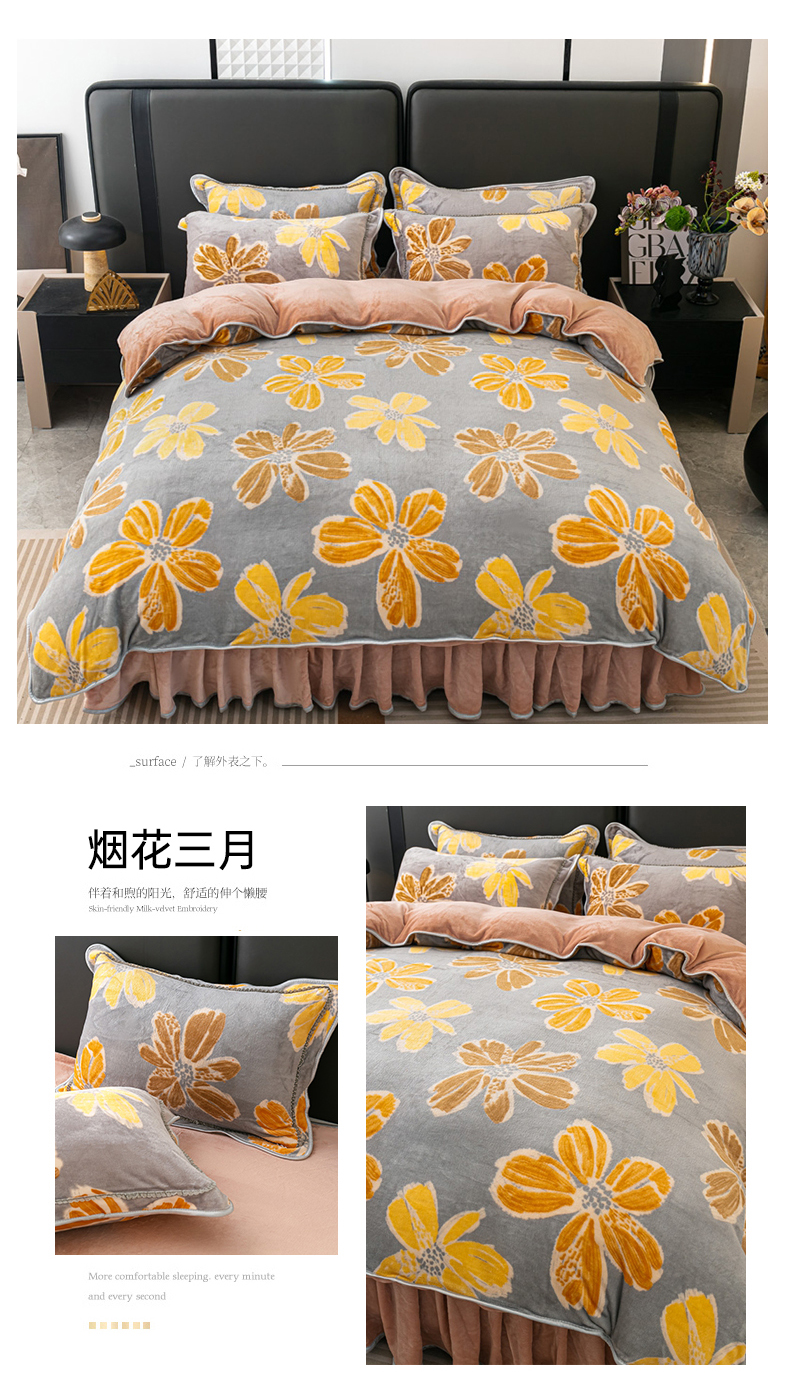 商品名称:栩裕 2025新款7斤重牛奶金貂绒印花牛奶绒四件套 烟花三月