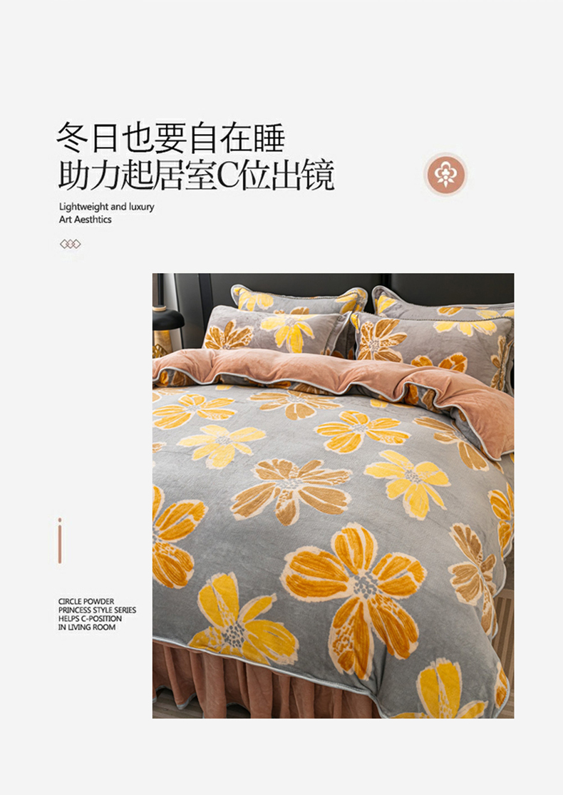 栩裕 2025新款7斤重牛奶金貂绒印花牛奶绒四件套 烟花三月