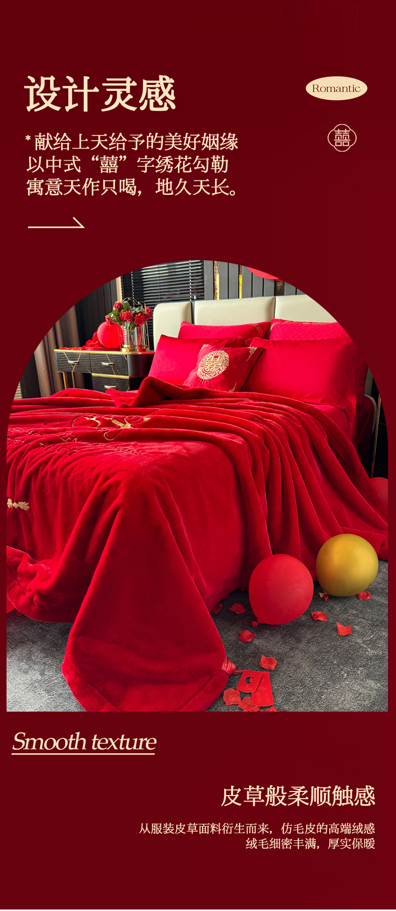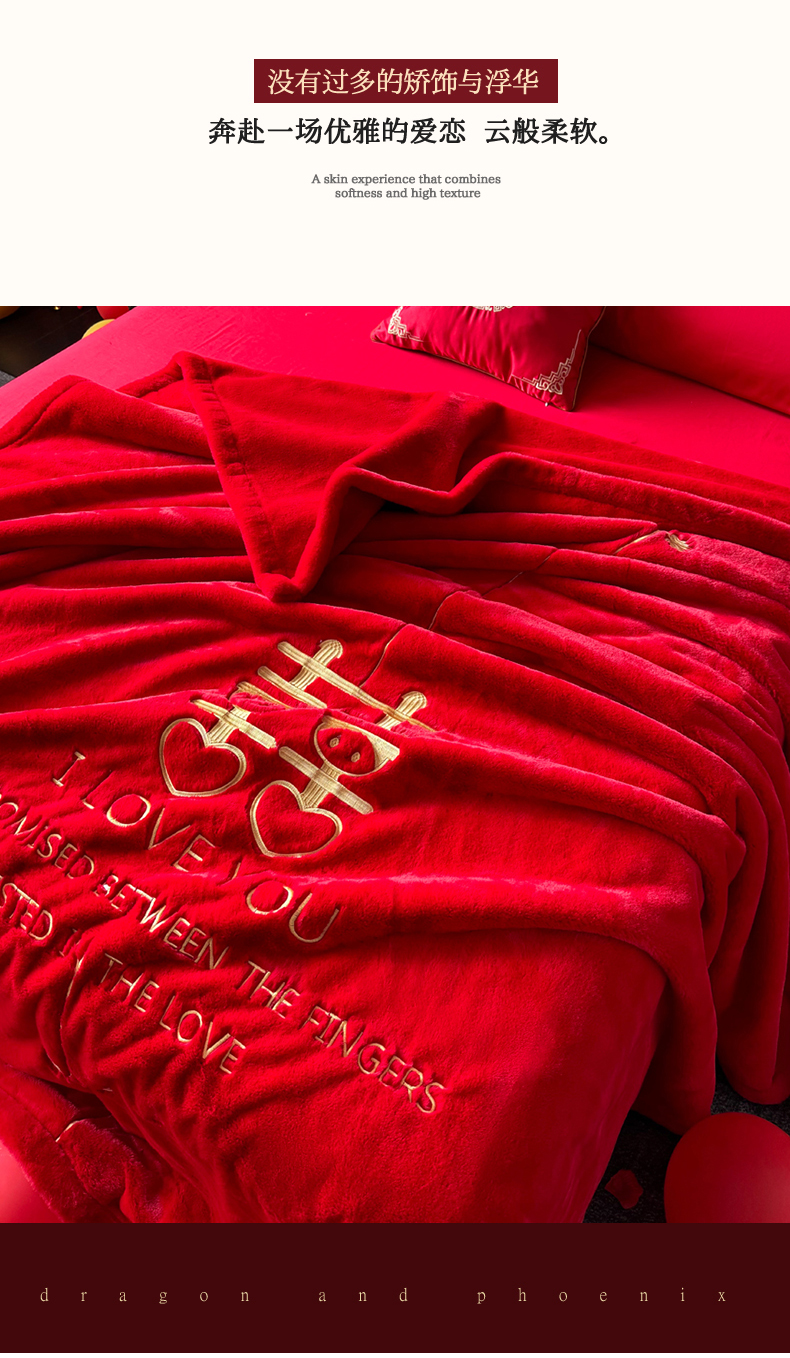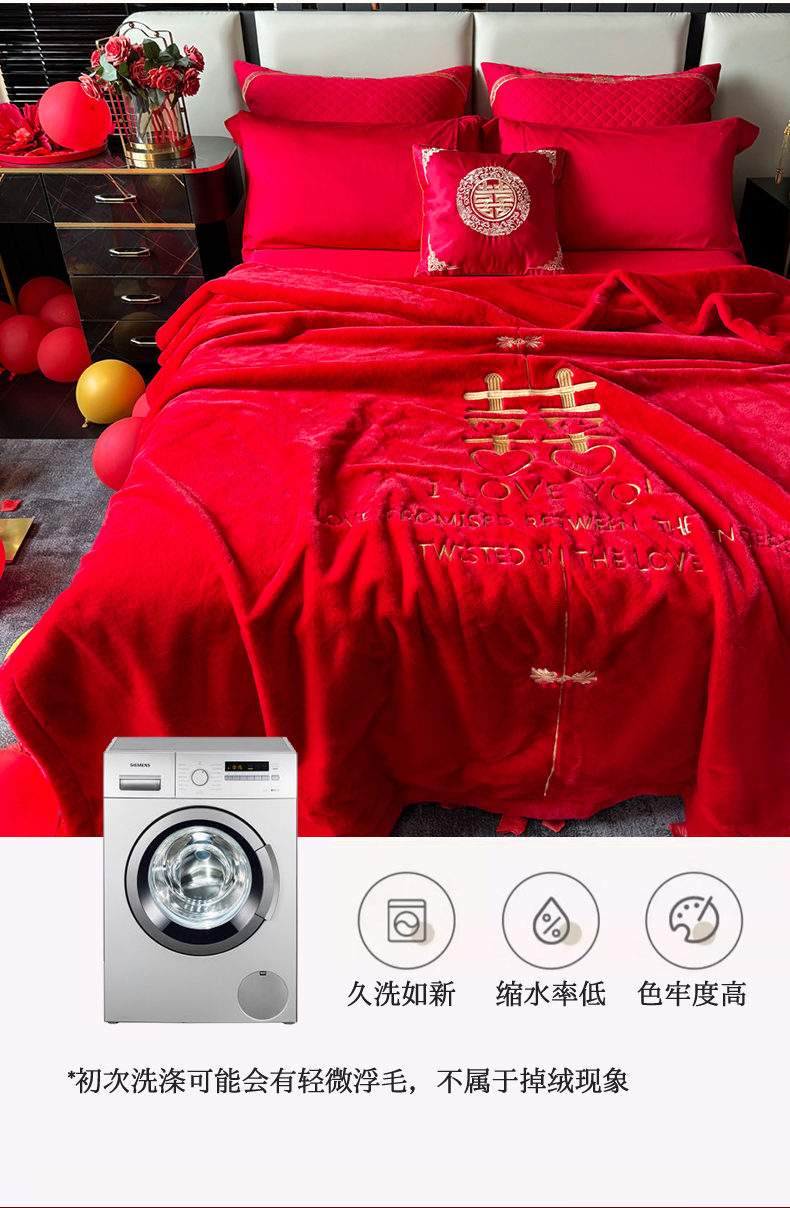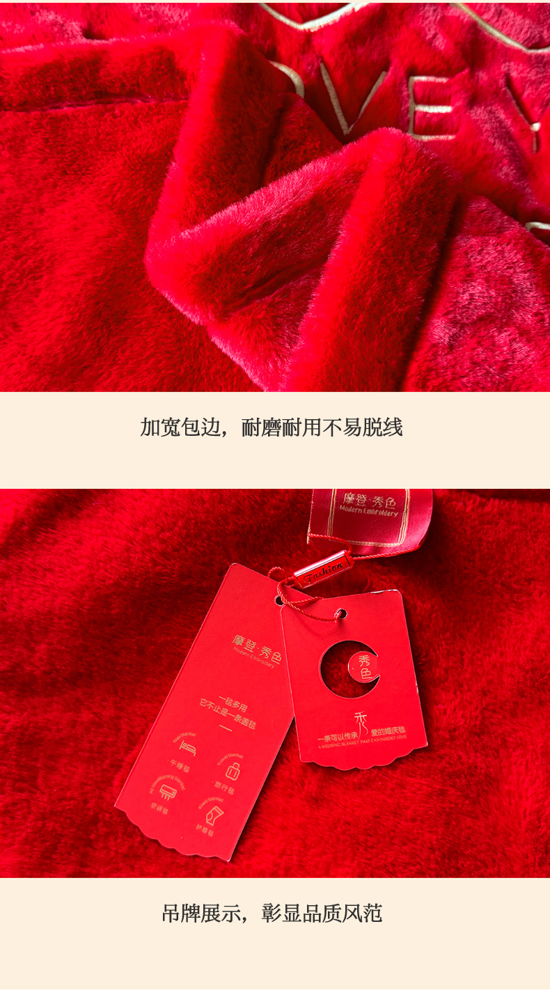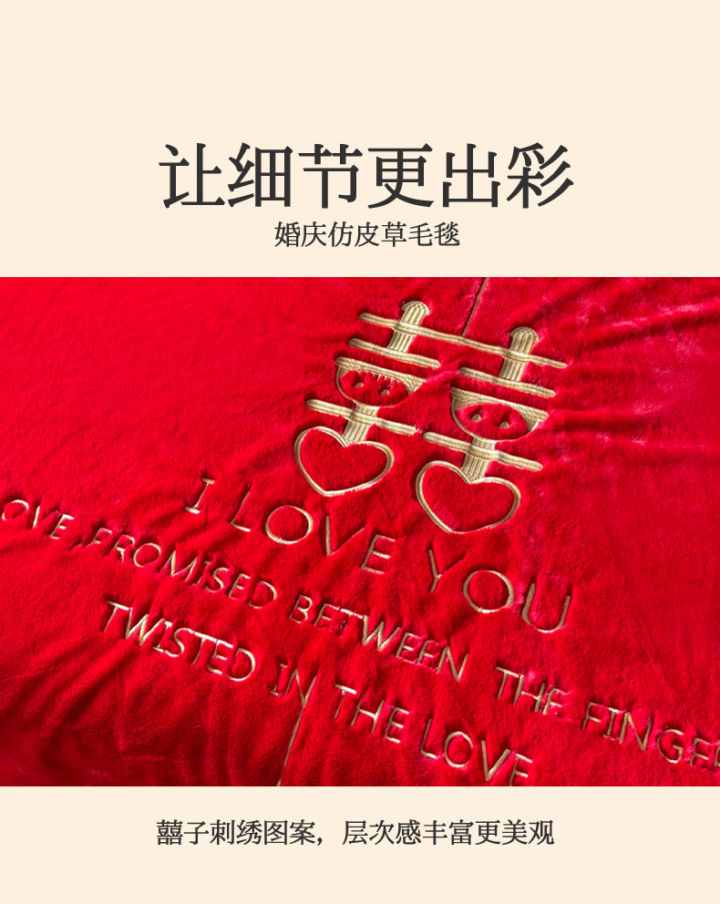 商品名称:2024新款仿皮草兔绒精品绣花毛毯毯子 喜成连理