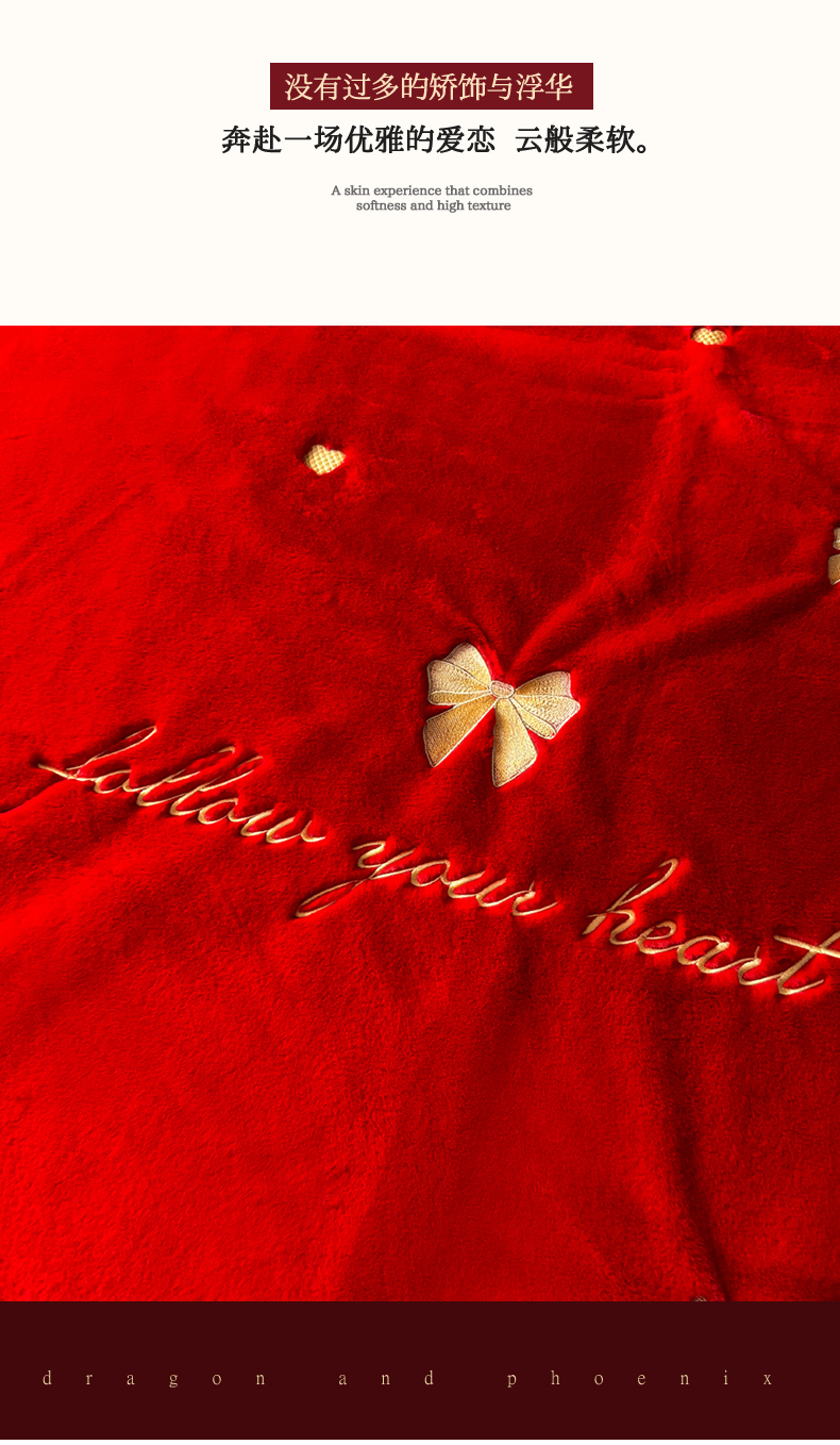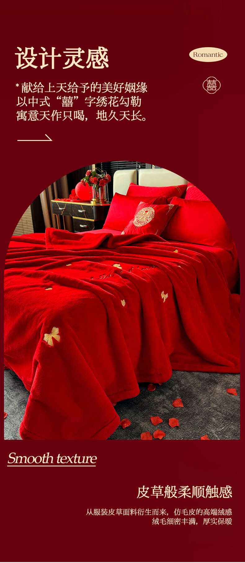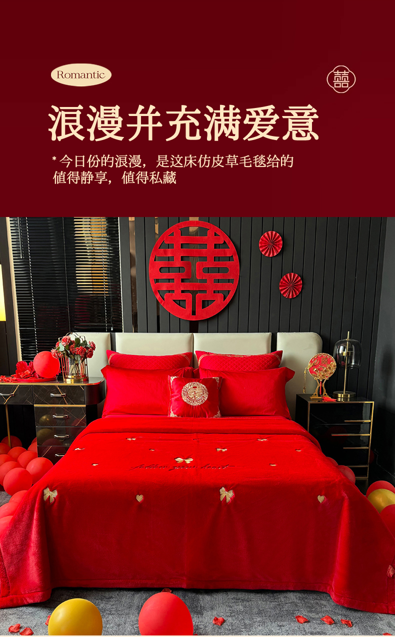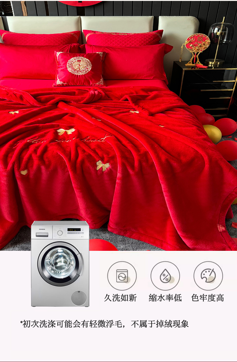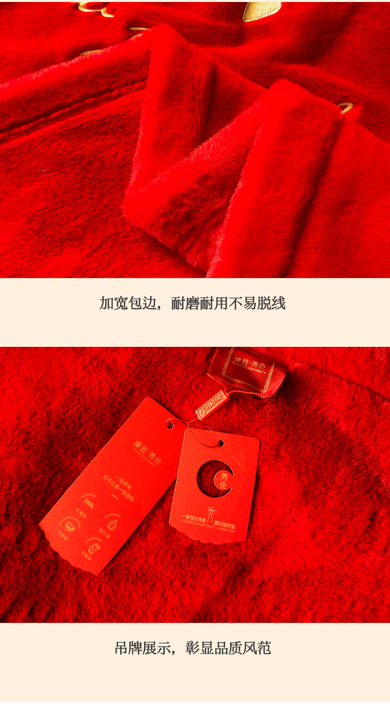 商品名称:2024新款仿皮草兔绒精品绣花毛毯毯子 蝴蝶结-大红