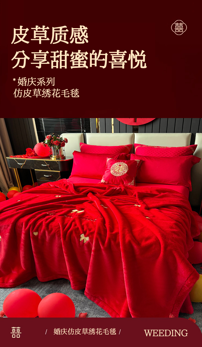 (总)凯轩毛毯网销专供 2026新款仿刺绣双层加厚压花云毯,豆沙红,绛紫色,孔雀绿,奶油咖,珊瑚粉,深灰色