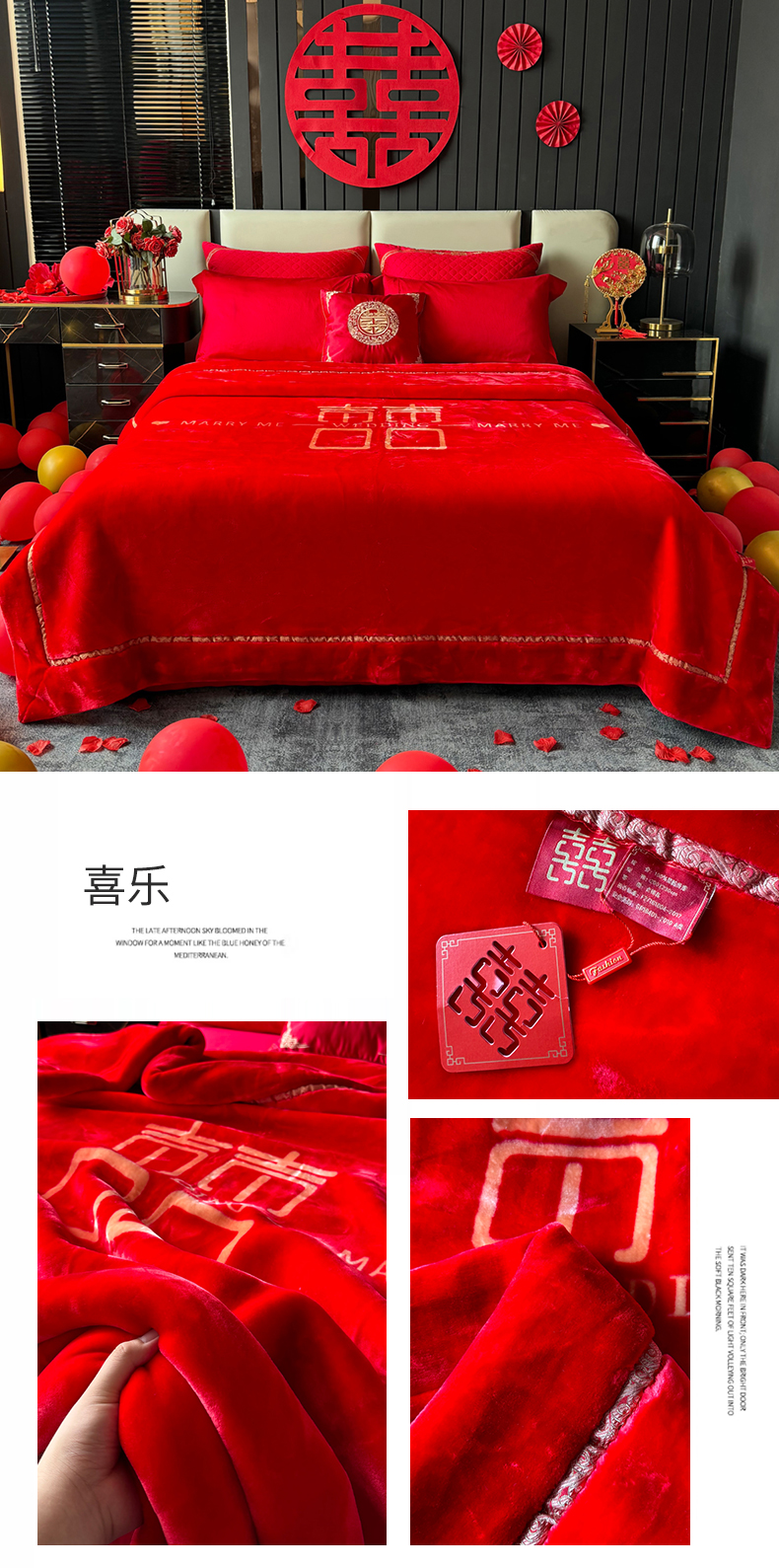商品名称:2024新款婚庆双层高密云毛毯毯子 喜乐