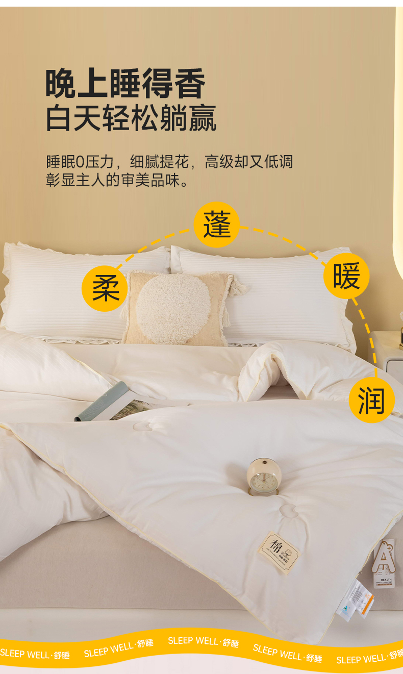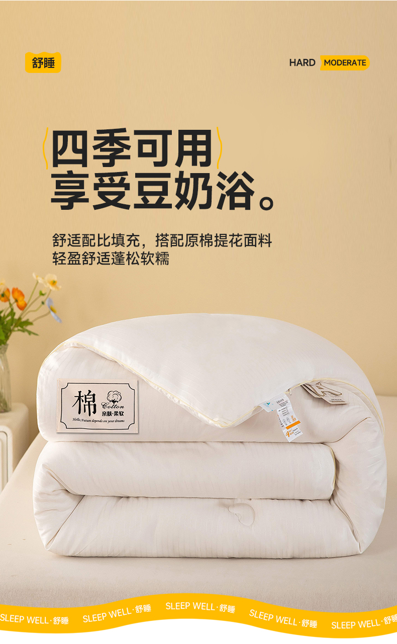 • 91家纺网 家纺一手货源 找家纺 森璐家纺 2024新款原棉提花大豆被 本白