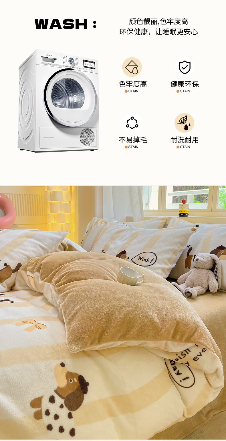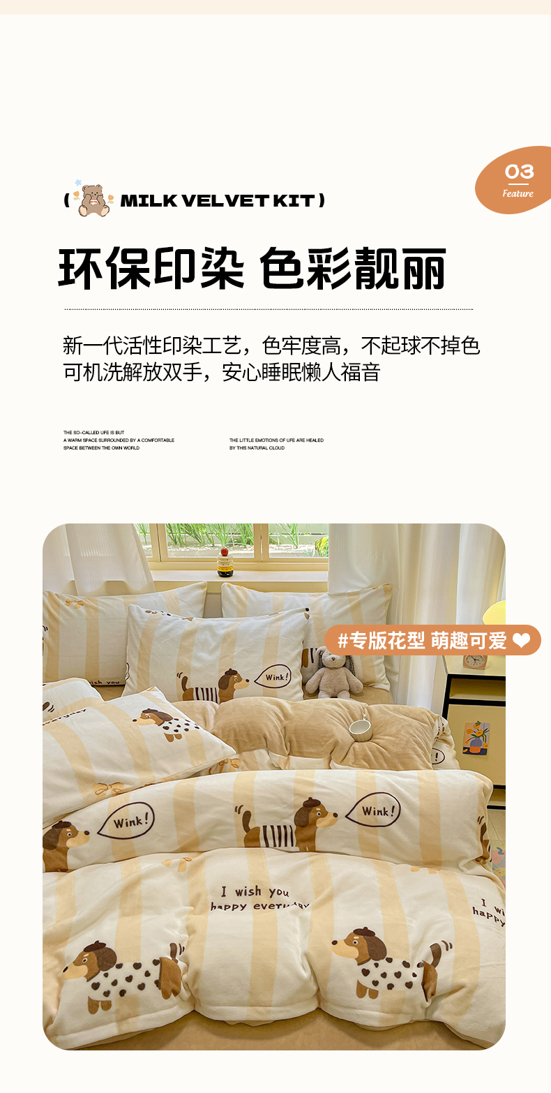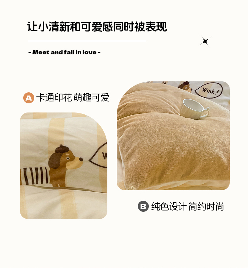 商品名称:铭宣家居 2024新款7斤小清新高克重牛奶绒印花四件套床单床笠款 腊肠狗