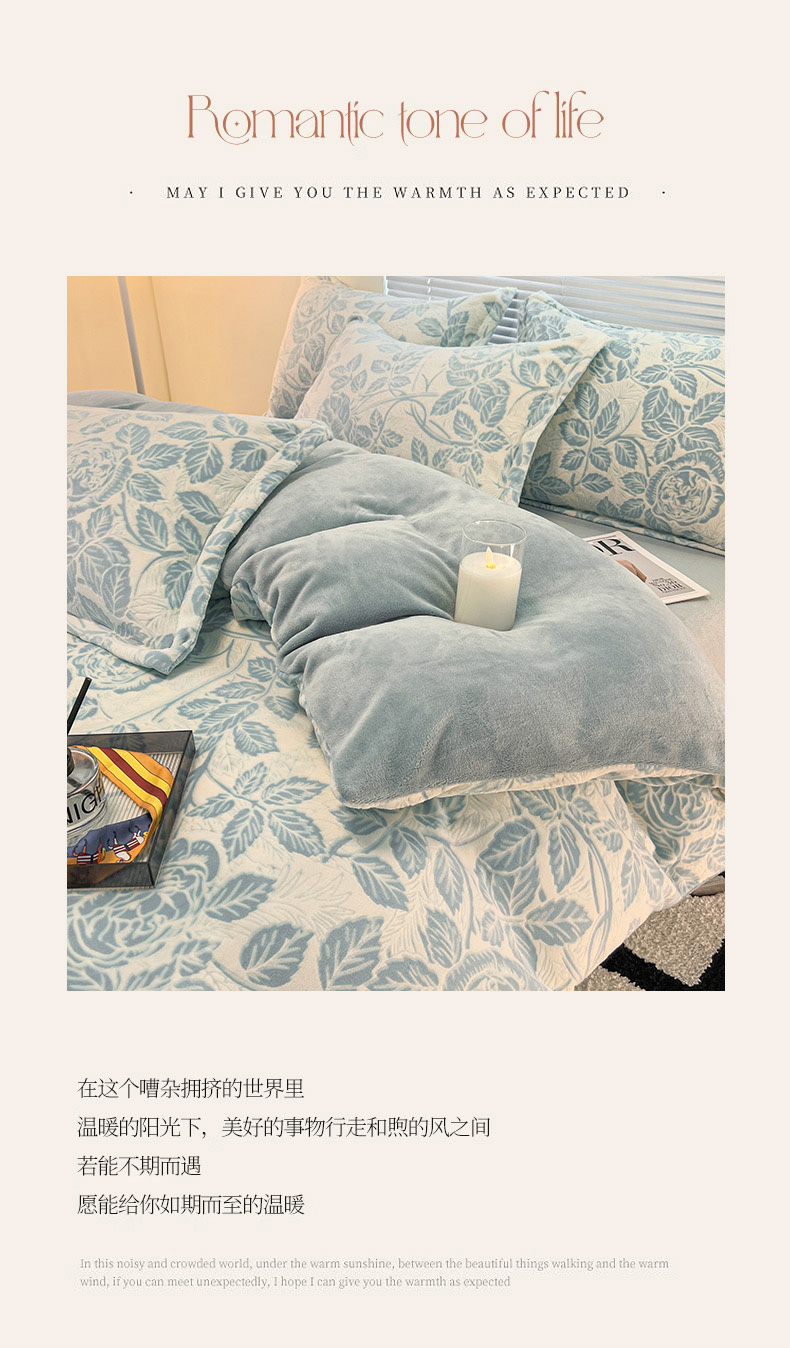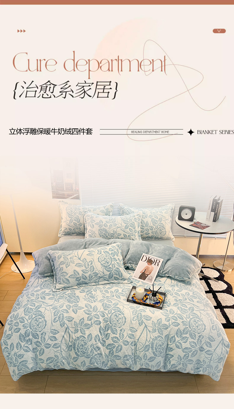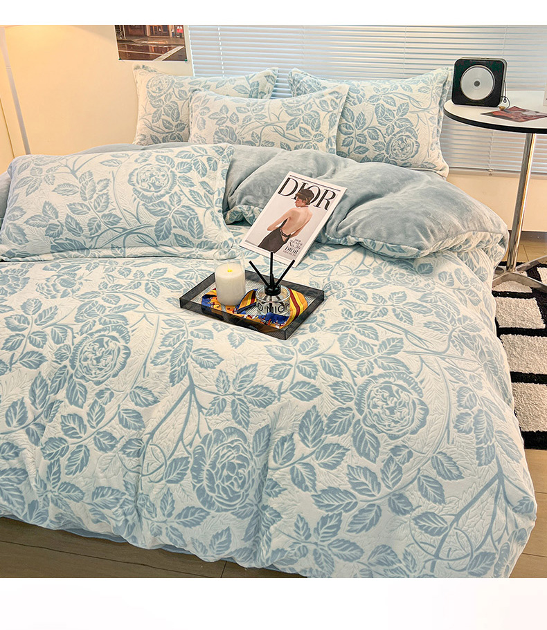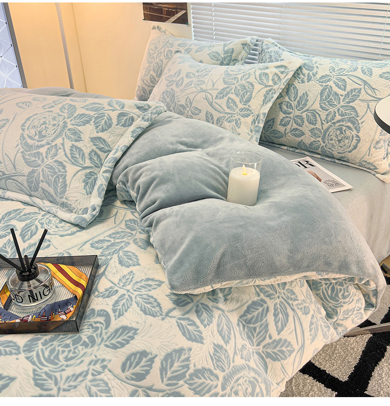 当前位置: 91家纺网 > 商品网购 > 床品套件 > 四件套 > 牛奶绒四件套 > 2024新款A类高克重立体浮雕牛奶绒加厚保暖系列-四件套 爱意浓蓝