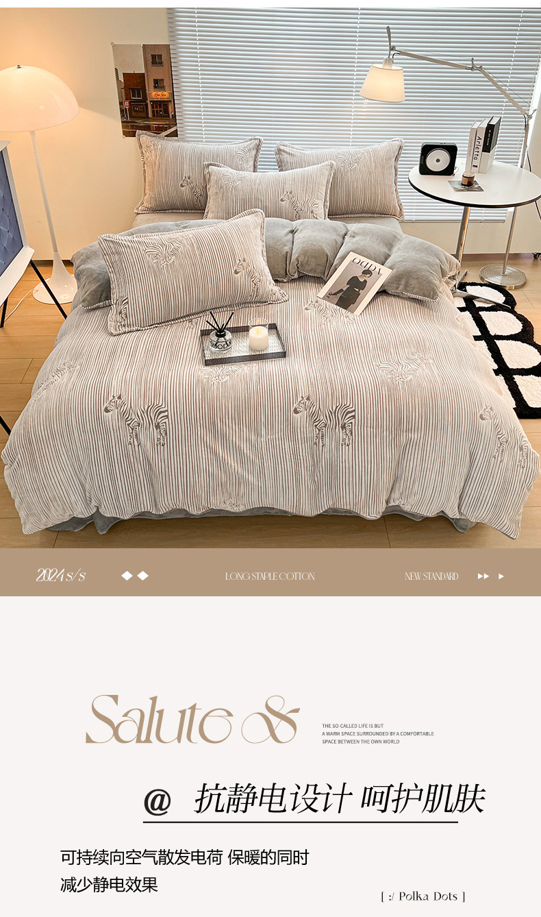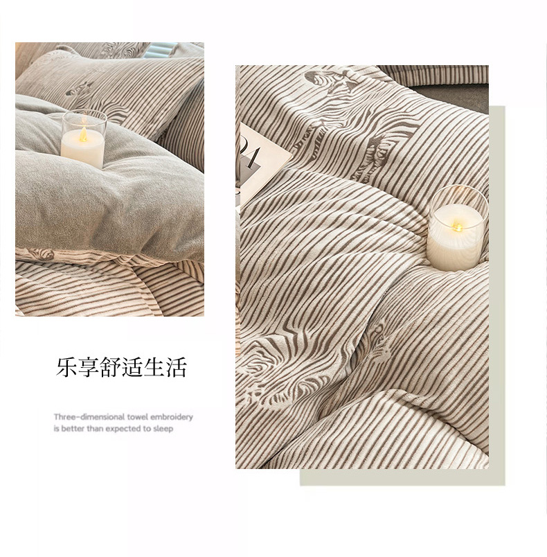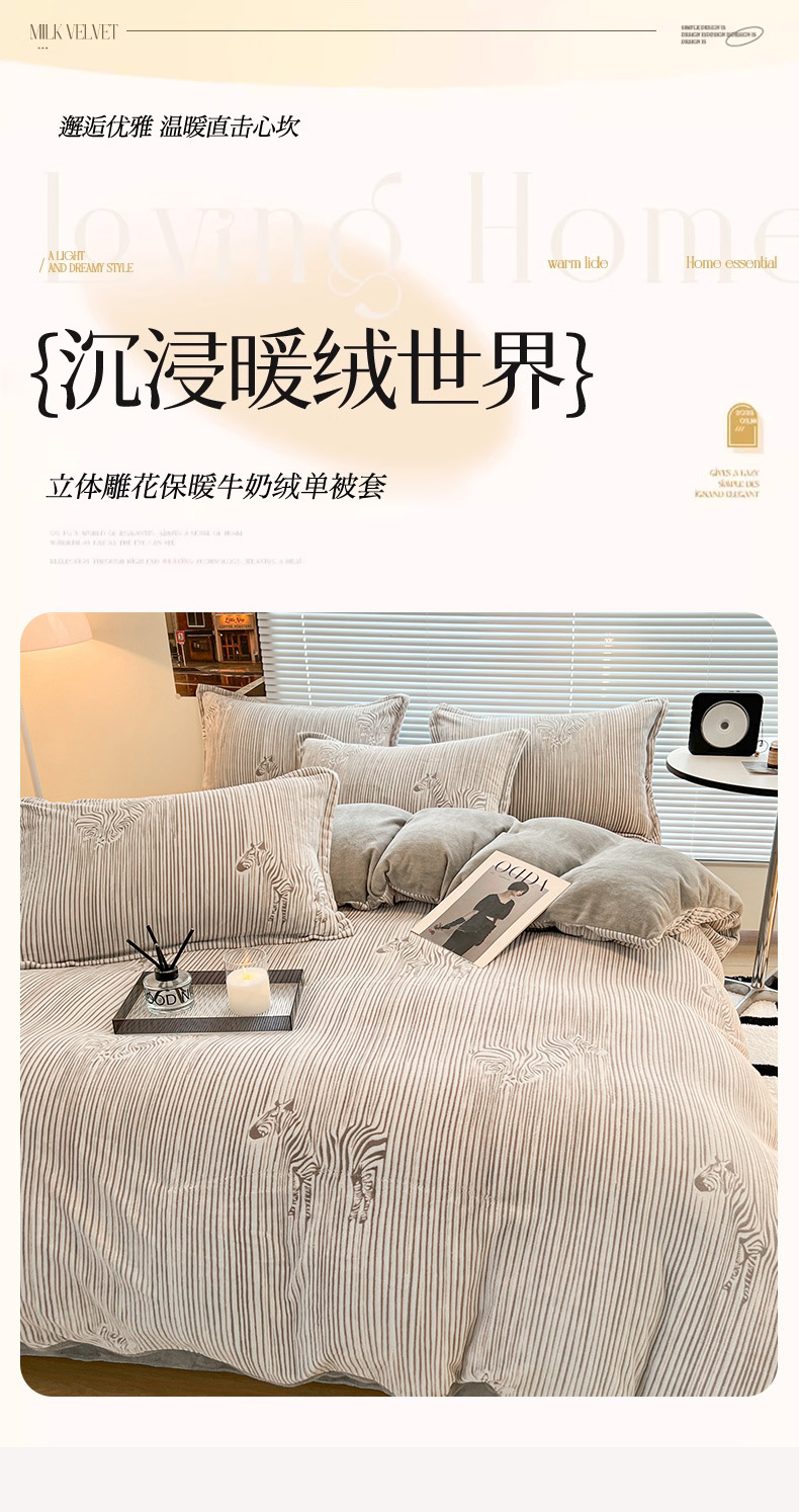 商品名称:2024新款A类高克重立体浮雕牛奶绒加厚保暖系列-被套 斑马灰