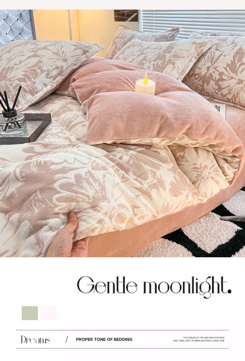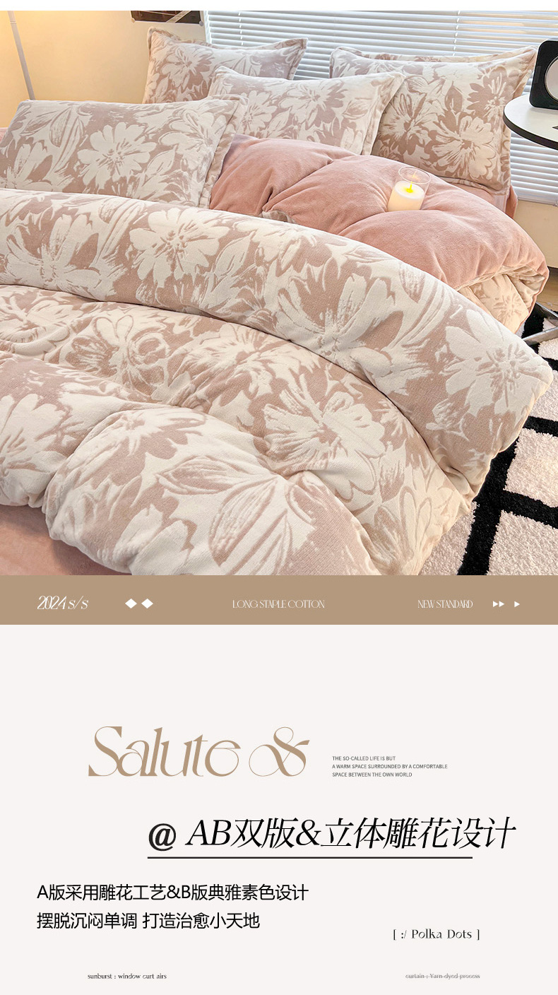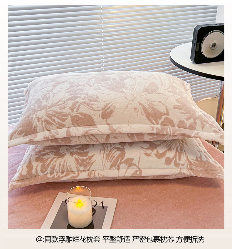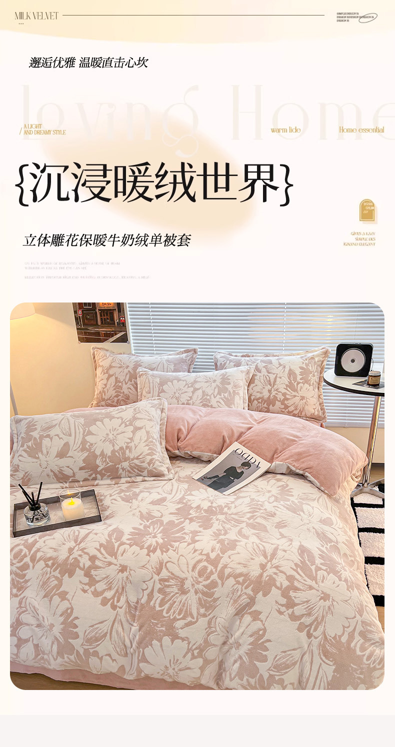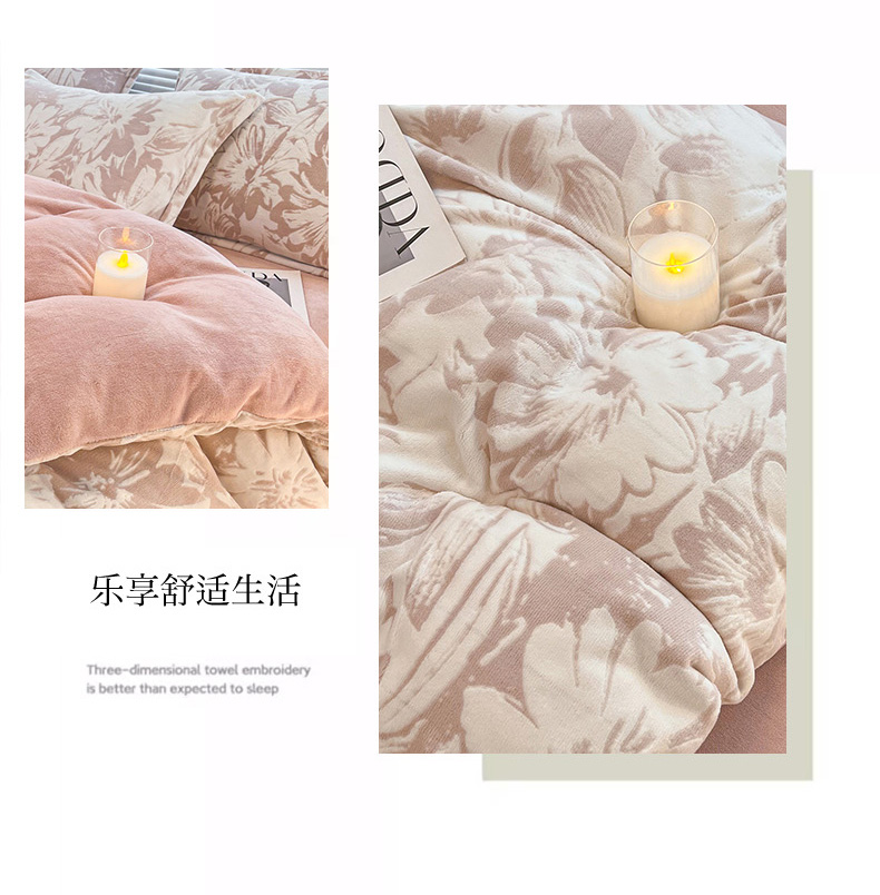 商品名称:2024新款A类高克重立体浮雕牛奶绒加厚保暖系列-被套 时光向暖粉