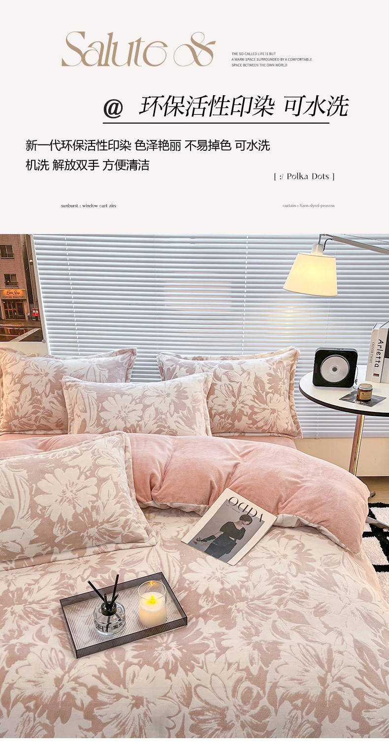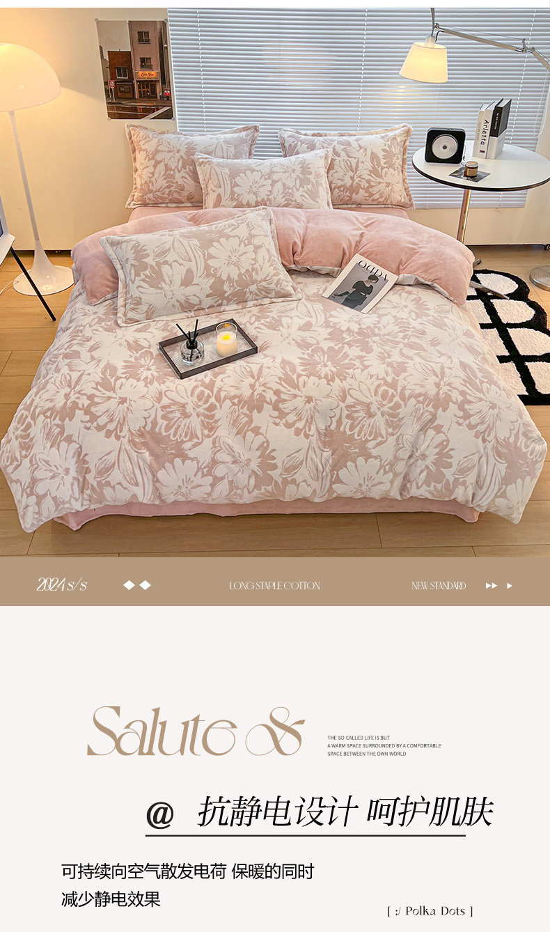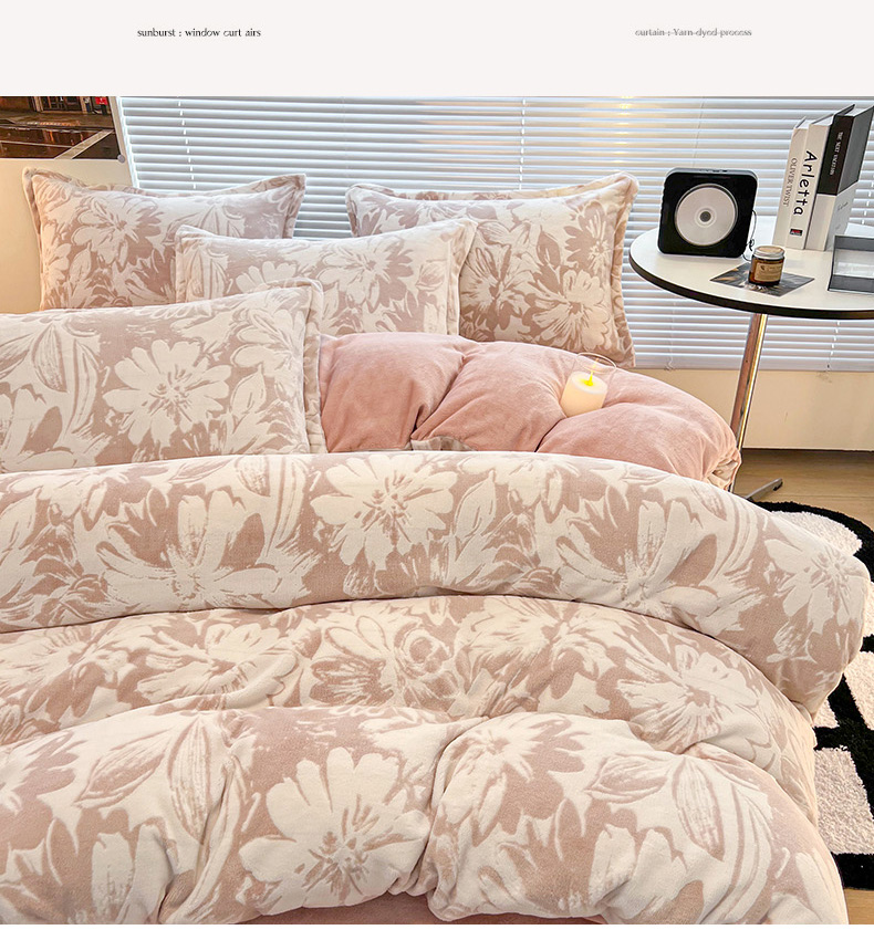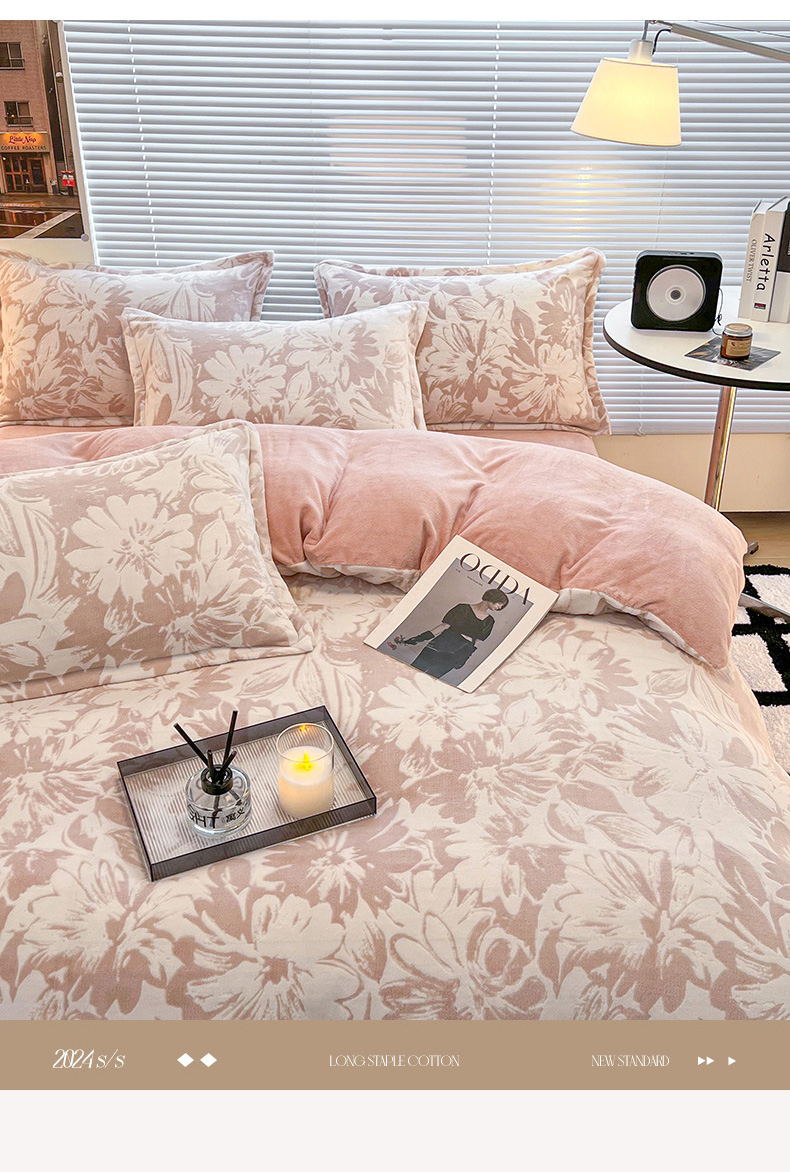 商品名称:2024新款A类高克重立体浮雕牛奶绒加厚保暖系列-被套 时光向暖粉