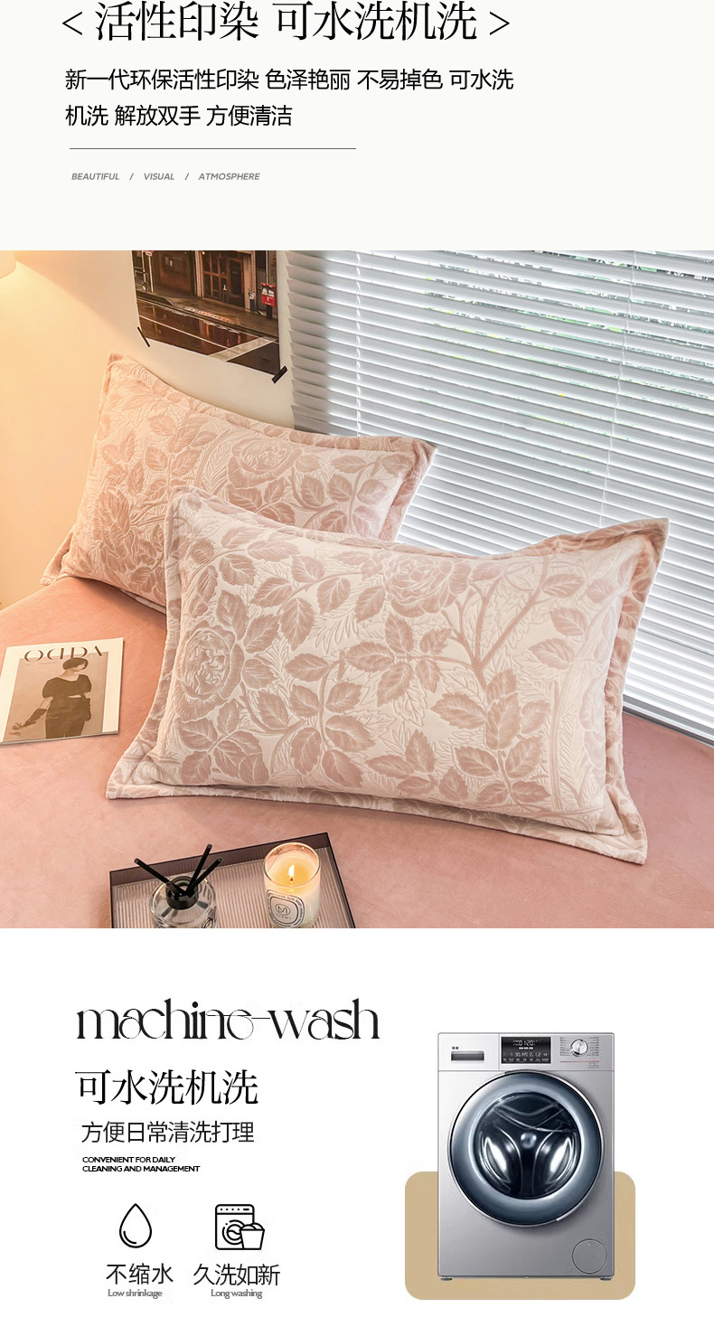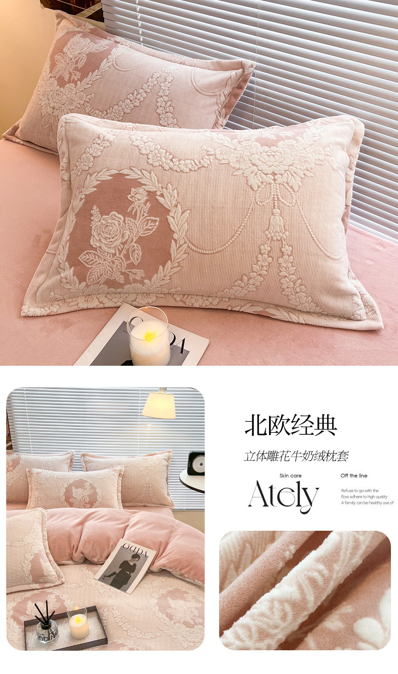 商品名称:2024新款A类高克重立体浮雕牛奶绒加厚保暖系列-枕套 流年花束粉