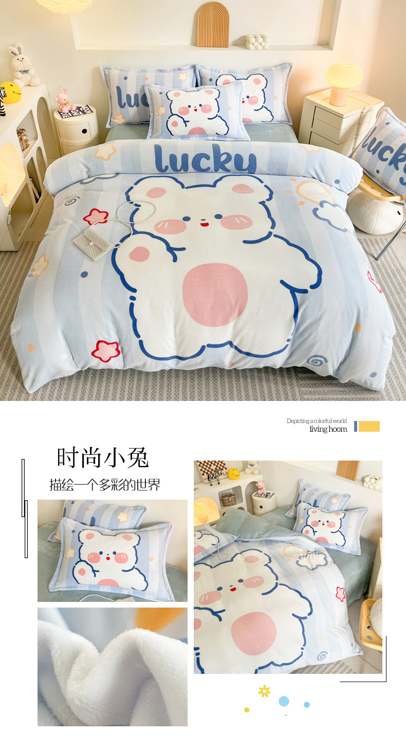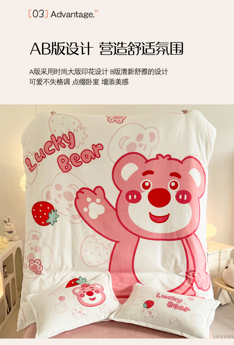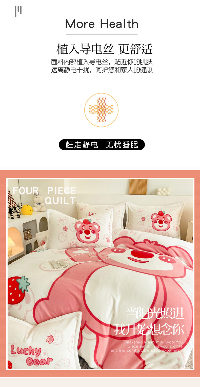 商品名称:2024新款A类高克重牛奶绒大版印花保暖四件套 幸运草莓熊