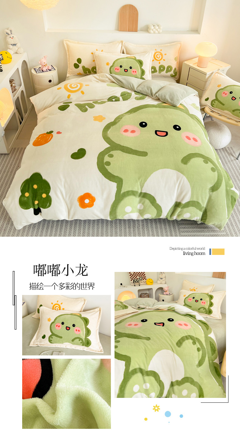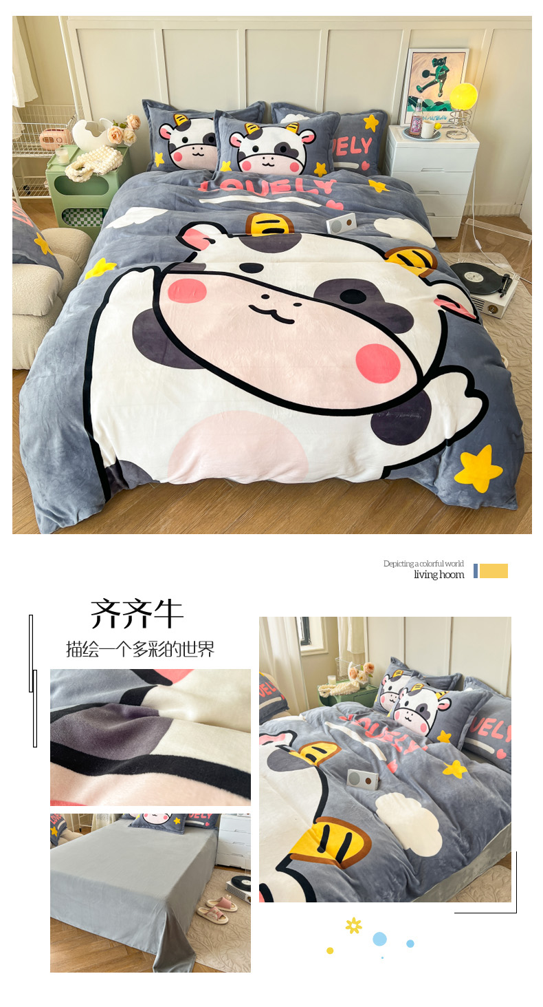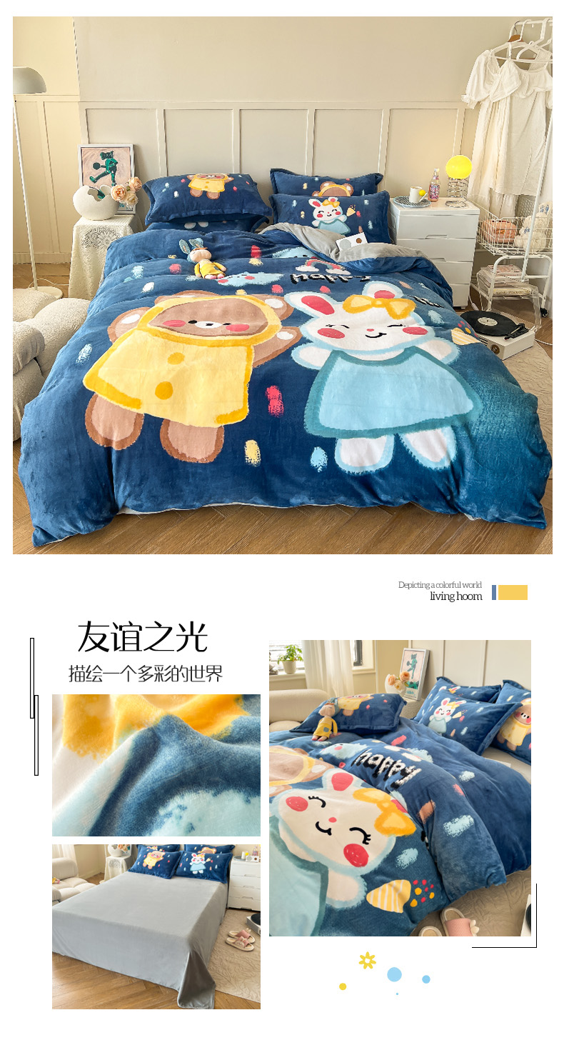 (总)倾慕家纺 2025新款卡通毛巾绣加厚保暖牛奶绒四件套,爱心女孩,咖啡小狗,猫咪熊兔,迷你小车,圣诞树熊,音乐企鹅
