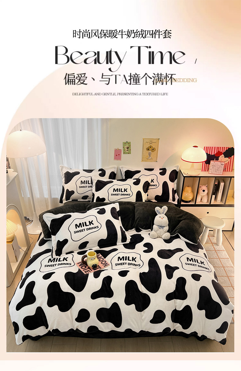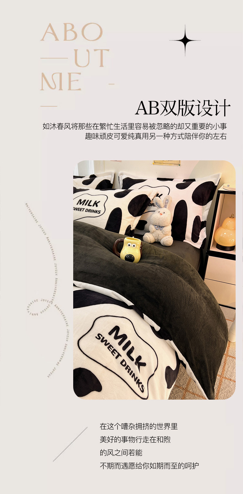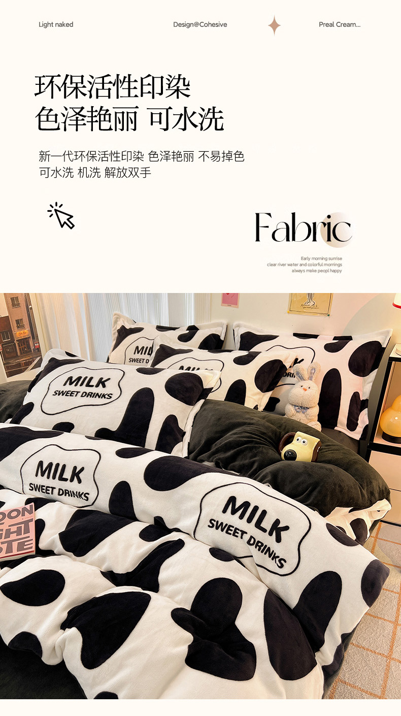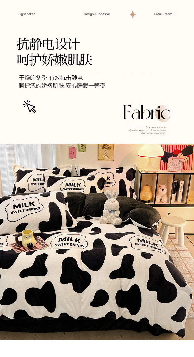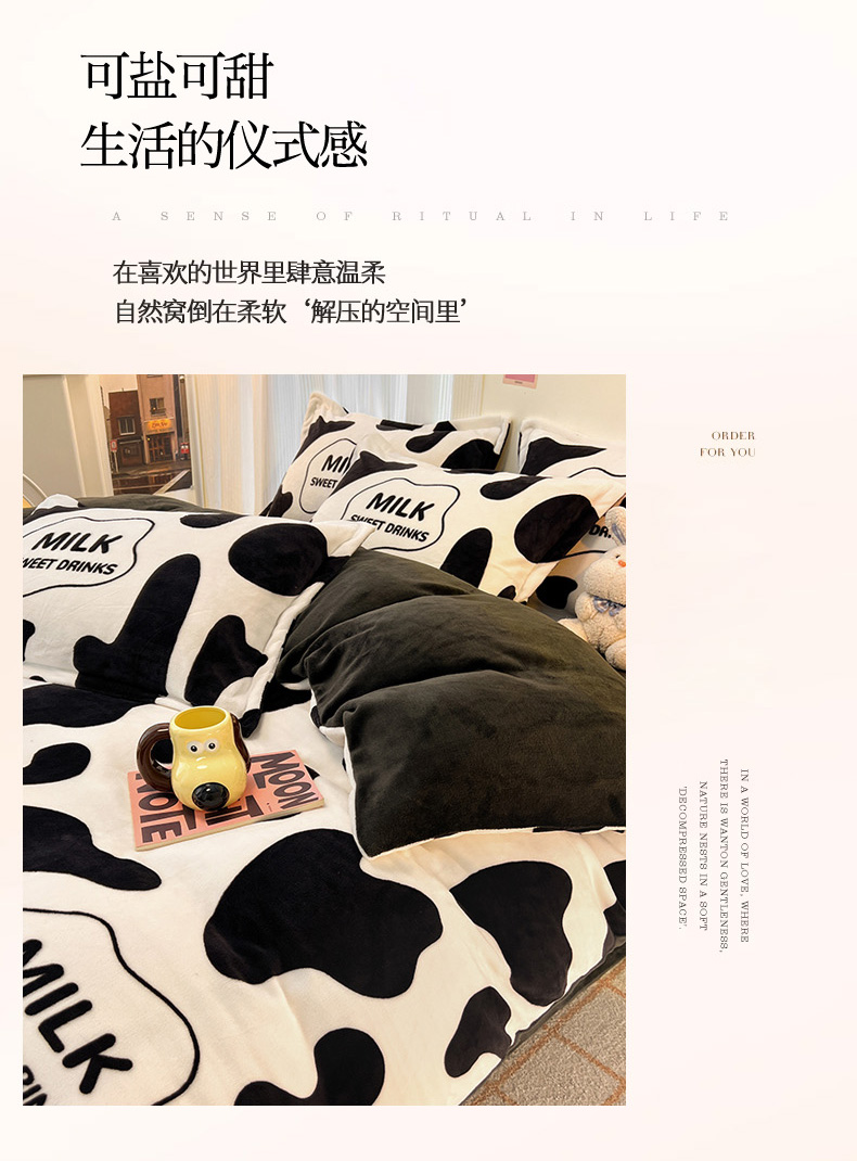当前位置: 91家纺网 > 商品网购 > 床品套件 > 四件套 > 牛奶绒四件套 > 2024新款A类高克重时尚风牛奶绒加厚保暖系列套件单品-四件套 大奶牛