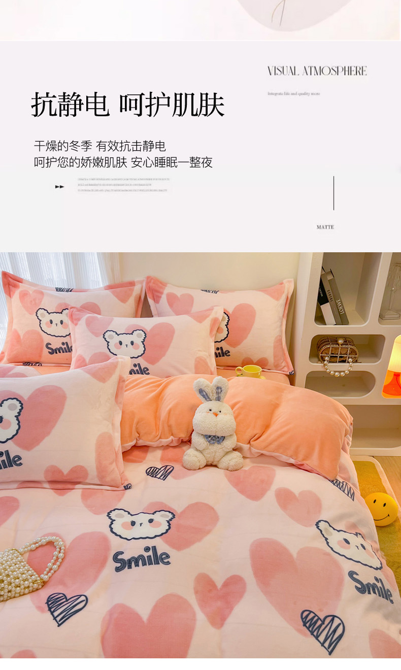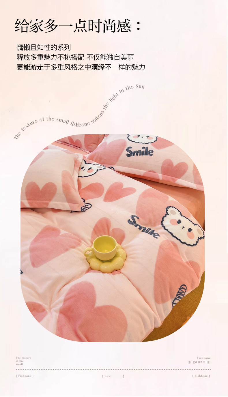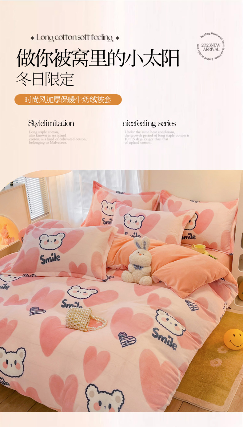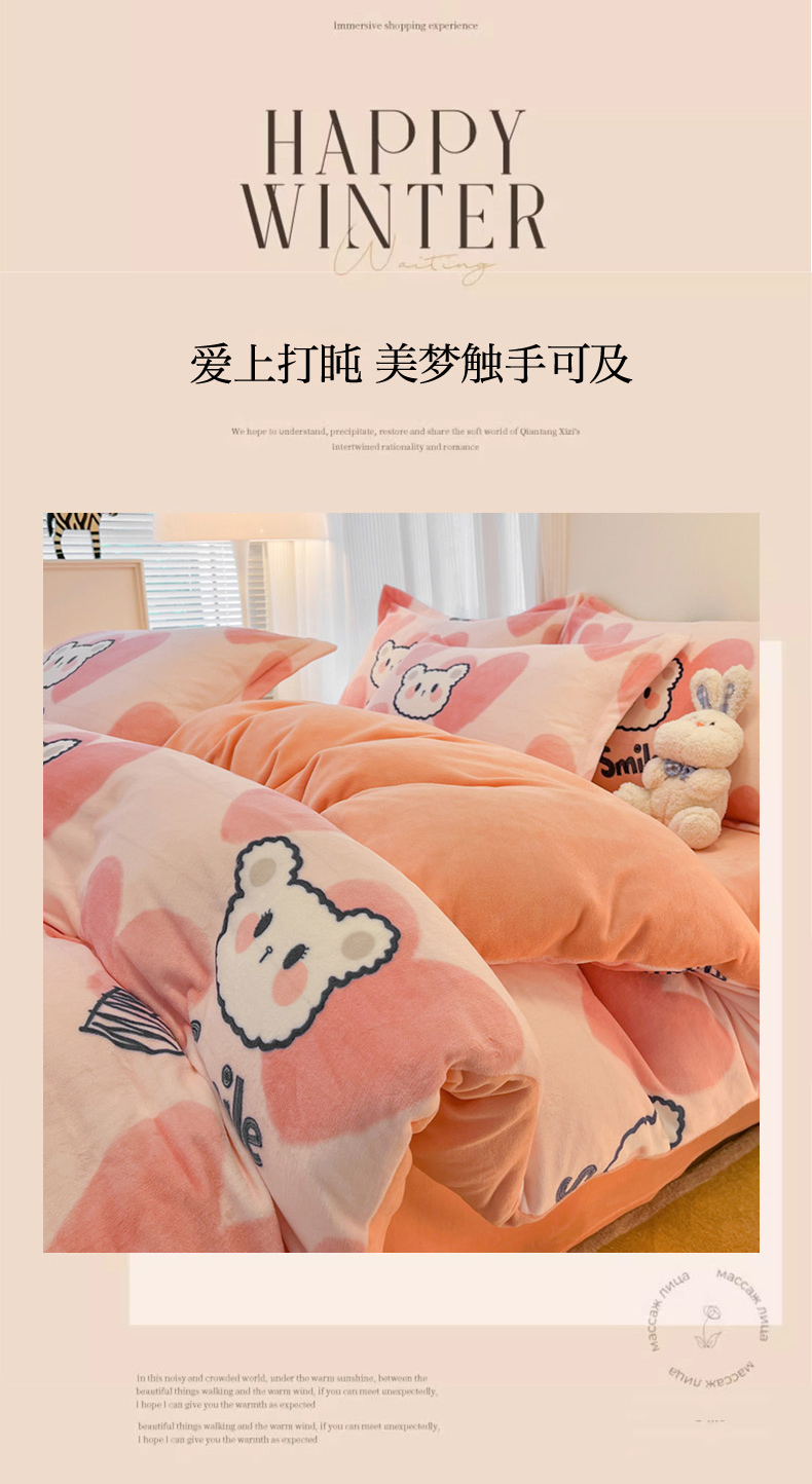 2024新款A类高克重时尚风牛奶绒加厚保暖系列套件单品-被套 波波熊粉
