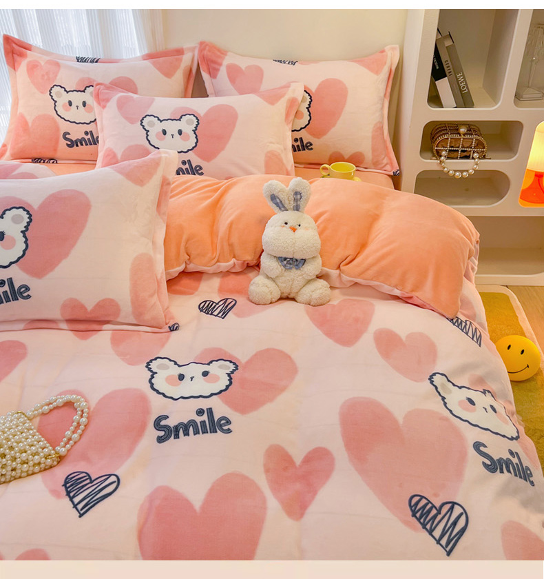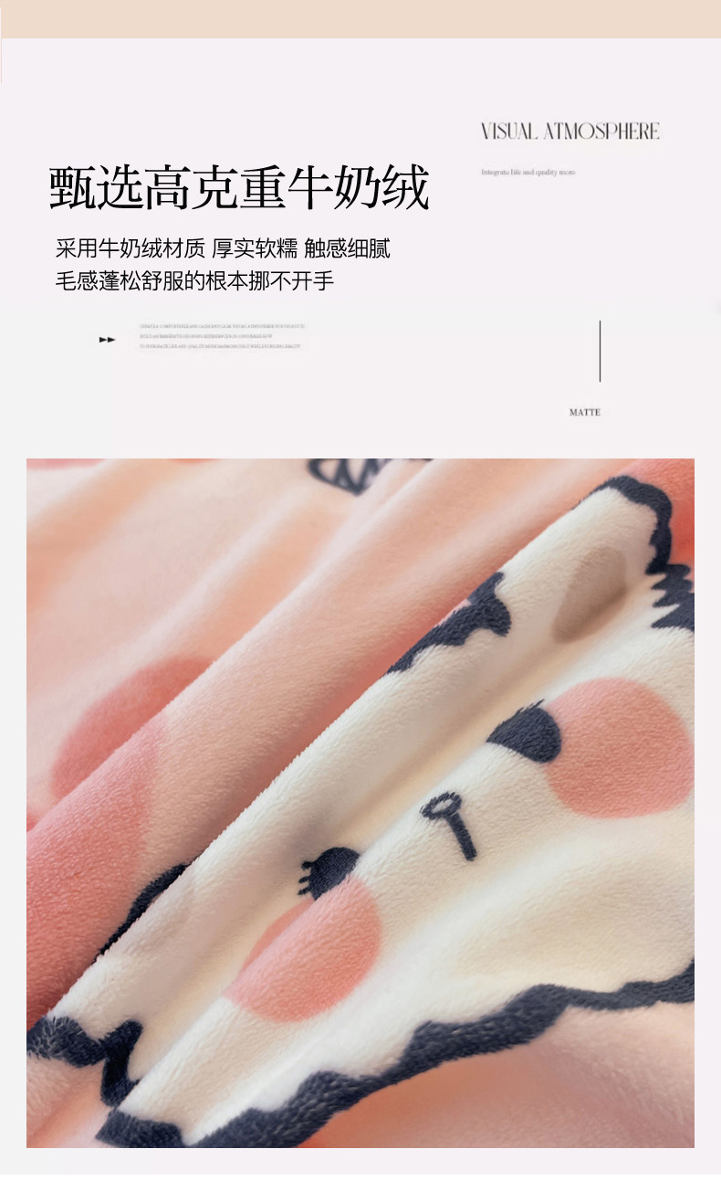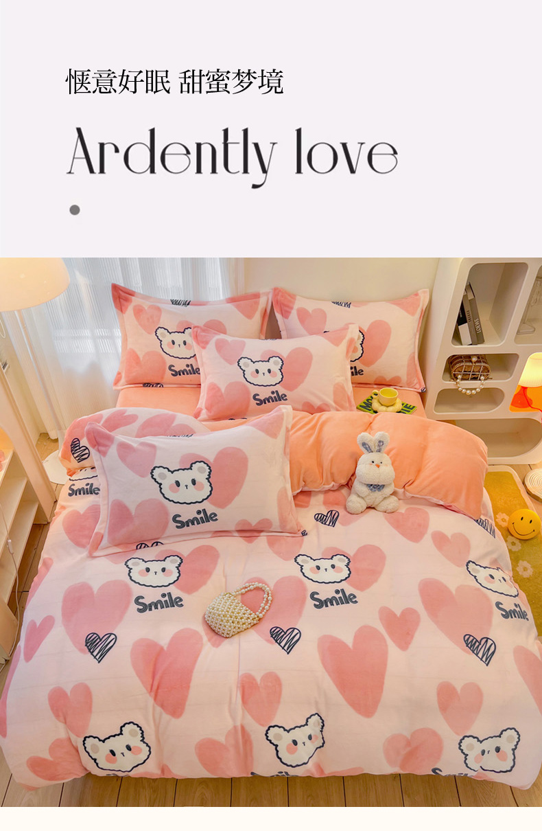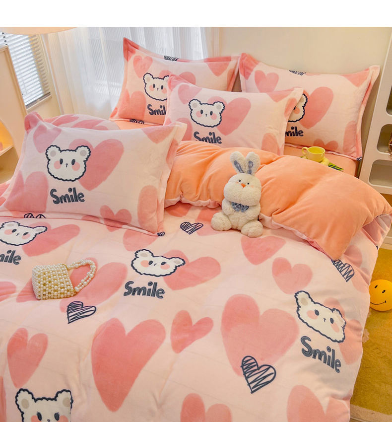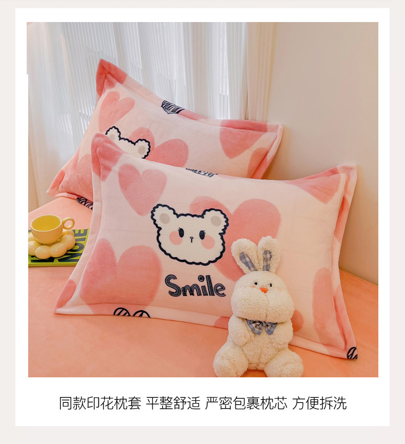 2024新款A类高克重时尚风牛奶绒加厚保暖系列套件单品-被套 波波熊粉