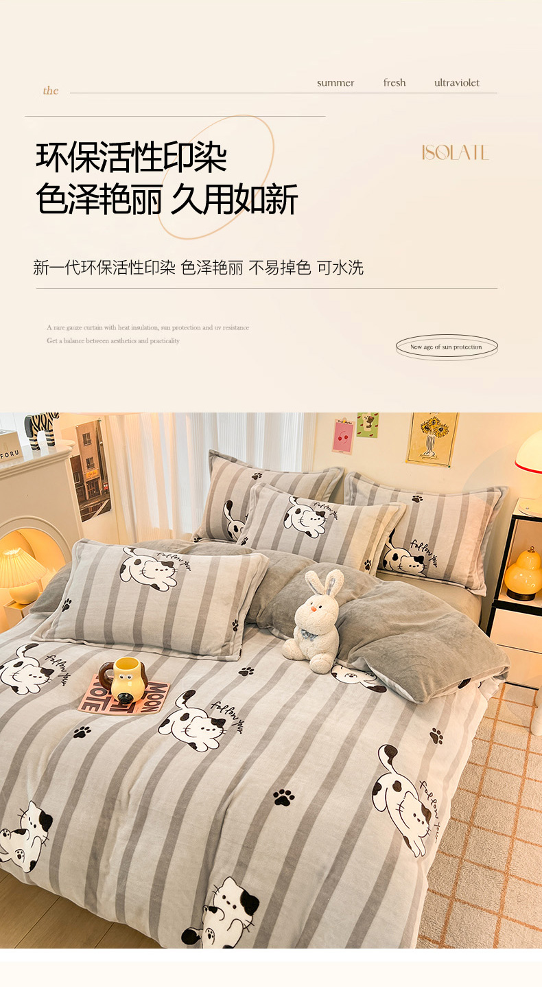 (总)倾慕家纺 2025新款卡通毛巾绣加厚保暖牛奶绒四件套,爱心女孩,咖啡小狗,猫咪熊兔,迷你小车,圣诞树熊,音乐企鹅