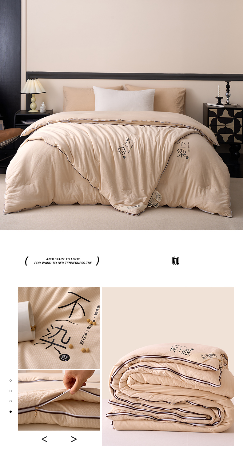 • 91家纺网 家纺一手货源 找家纺 维洋家纺 2025新款不染原棉大豆被-子母被 不染卡其
