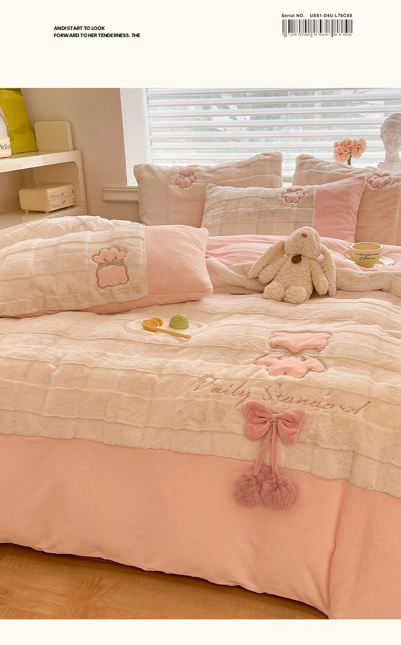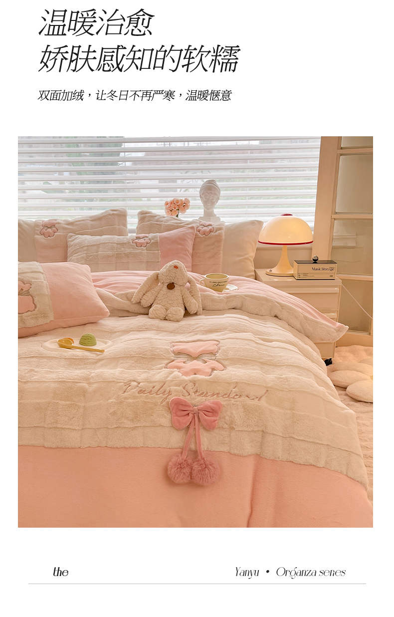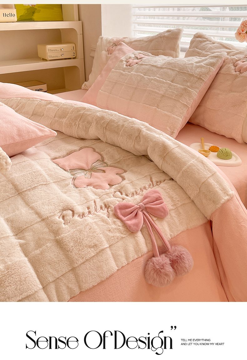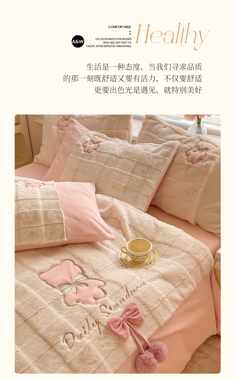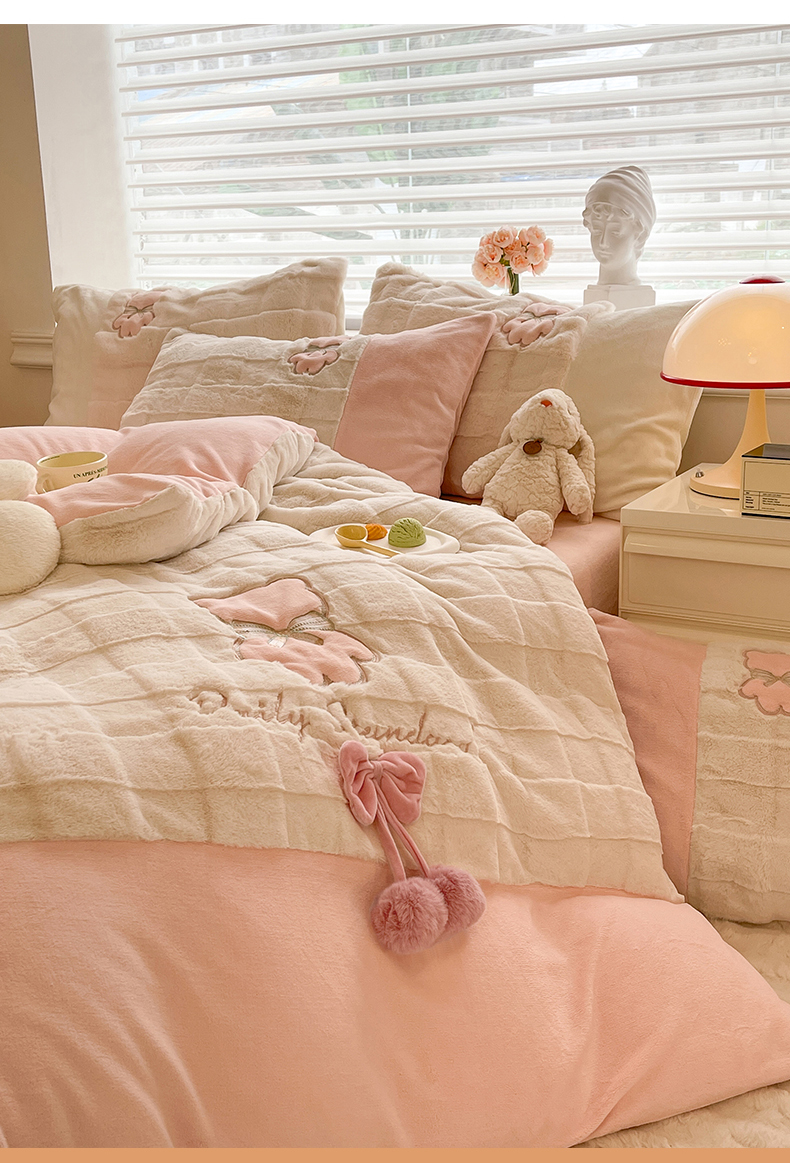 当前位置: 91家纺网 > 商品网购 > 床品套件 > 四件套 > 全棉普通四件套 > 绒棉世家 2025新款A类獭兔毛高端兔兔绒工艺款四件套-小熊系列 蝴蝶小熊-粉