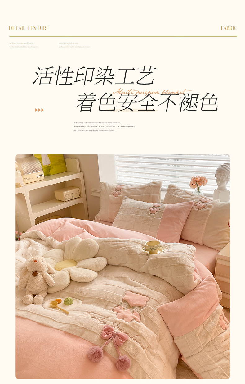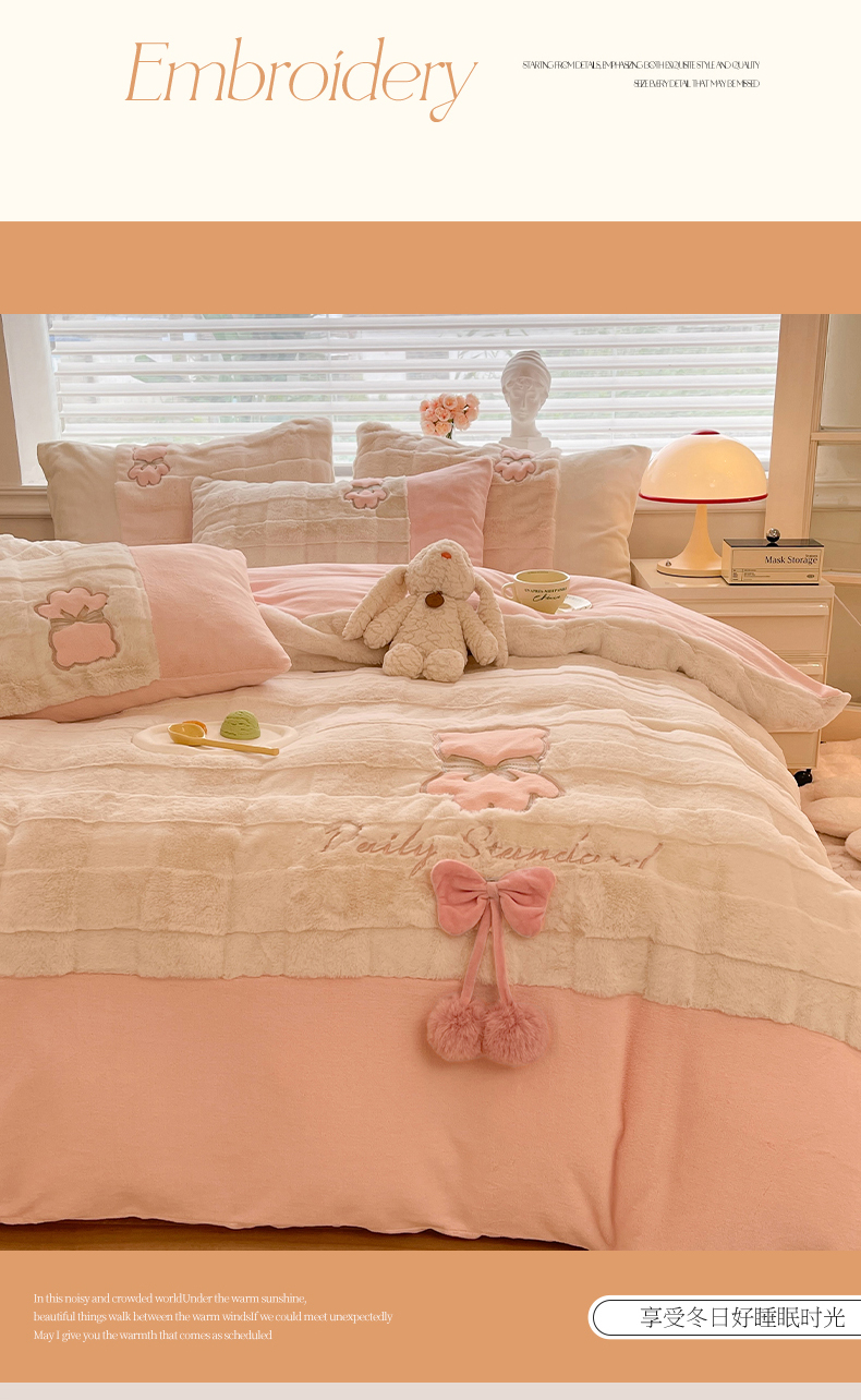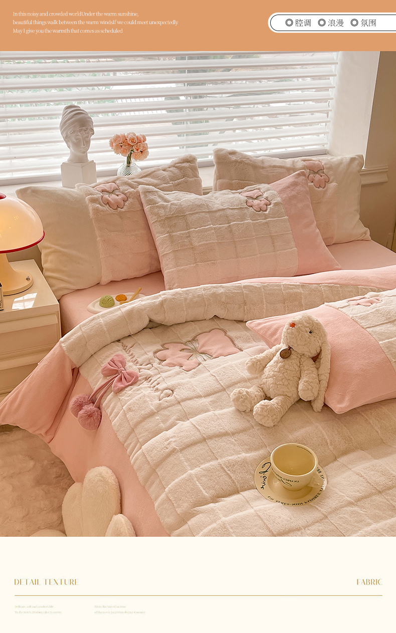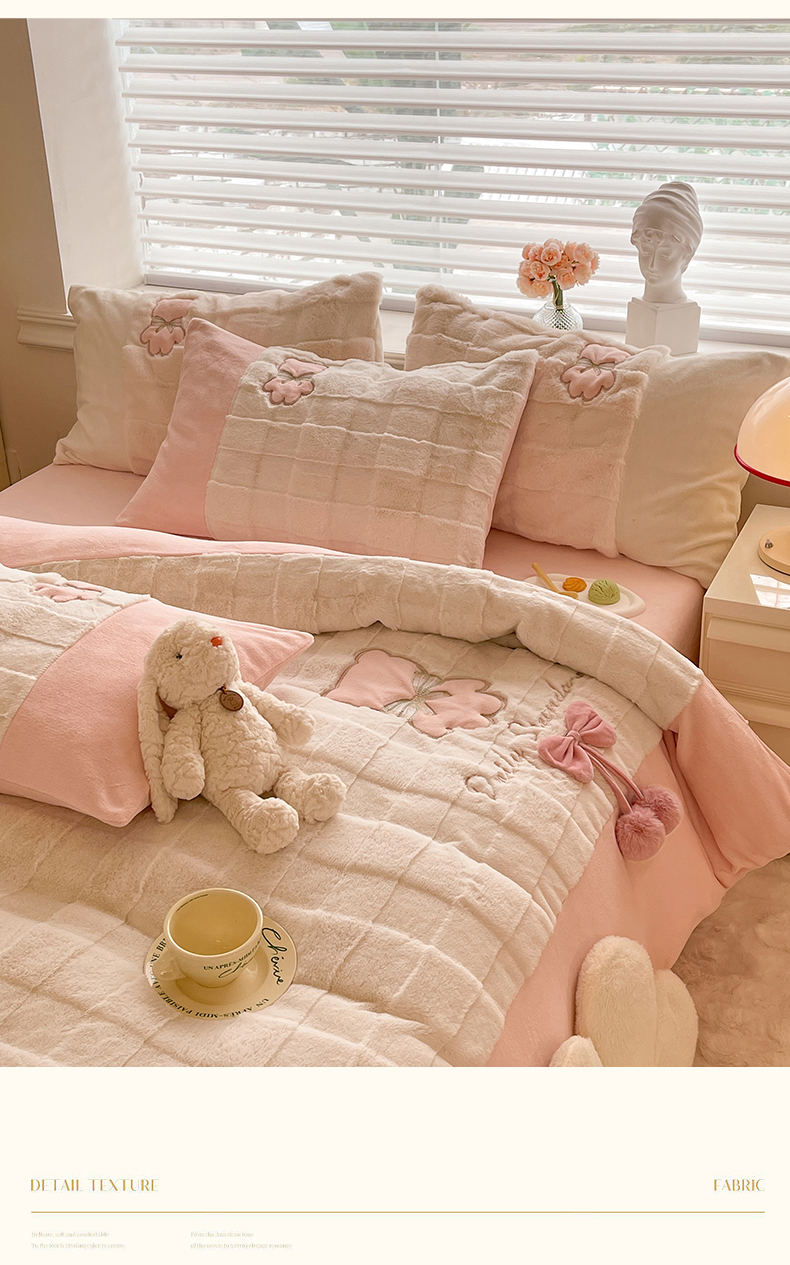 当前位置: 91家纺网 > 商品网购 > 床品套件 > 四件套 > 全棉普通四件套 > 绒棉世家 2025新款A类獭兔毛高端兔兔绒工艺款四件套-小熊系列 蝴蝶小熊-粉