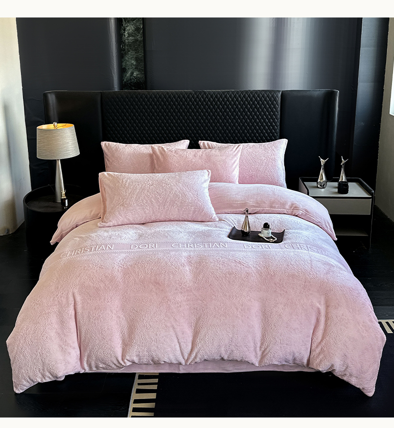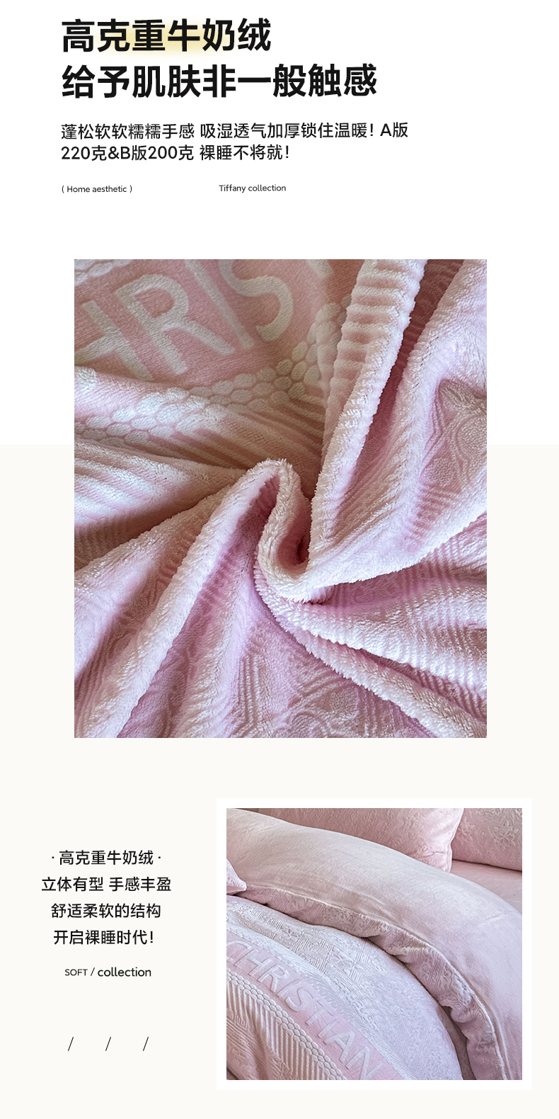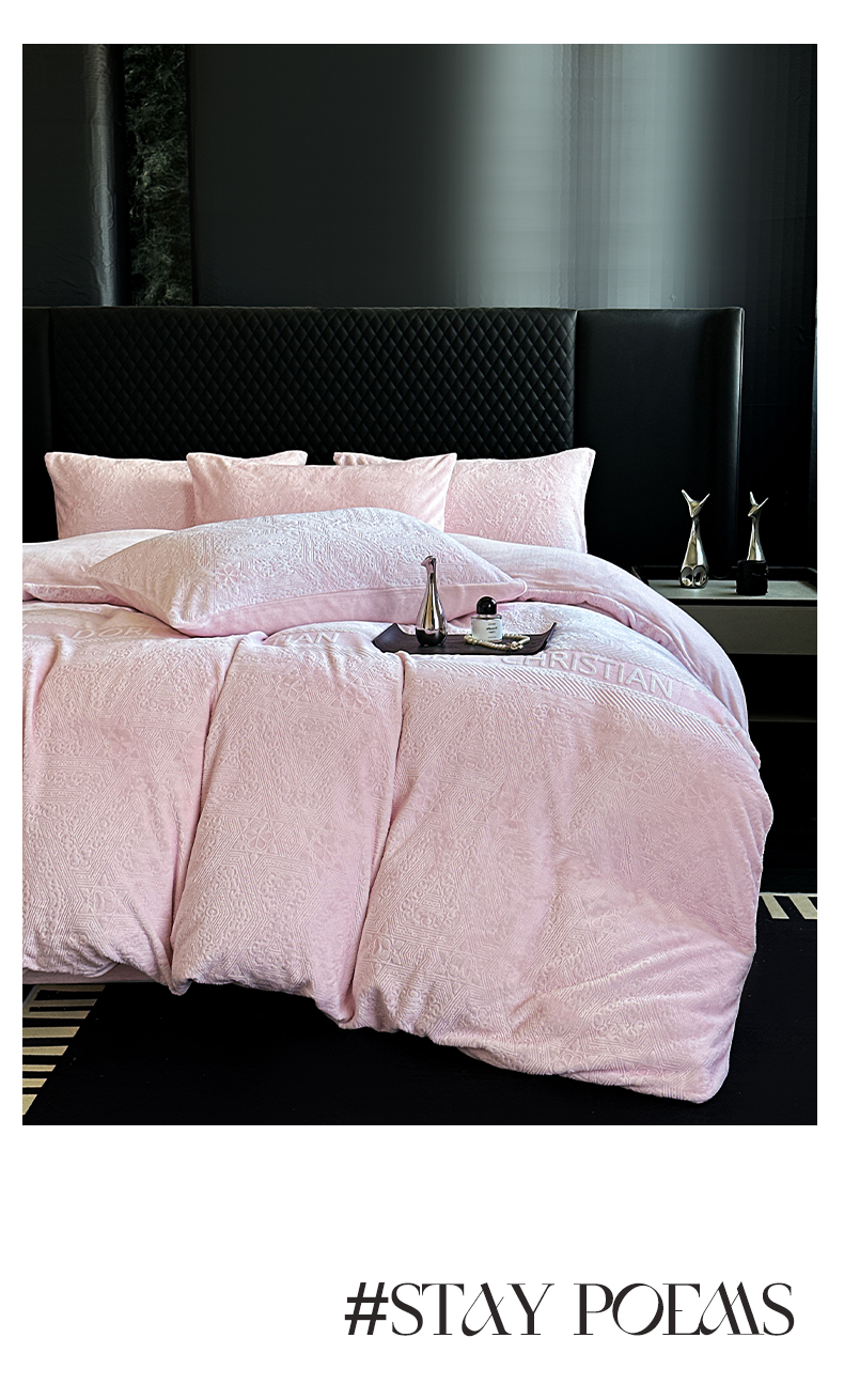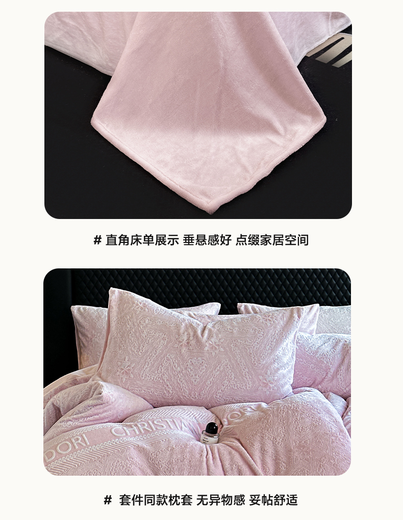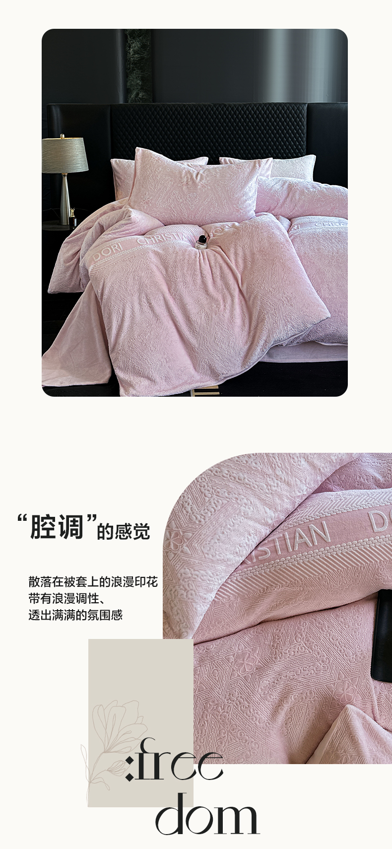 当前位置: 91家纺网 > 商品网购 > 床品套件 > 四件套 > 牛奶绒四件套 > 莱登卡奴 2024新款高克重牛奶绒雕花轻奢款四件套-维多利系列 繁花冰莓粉