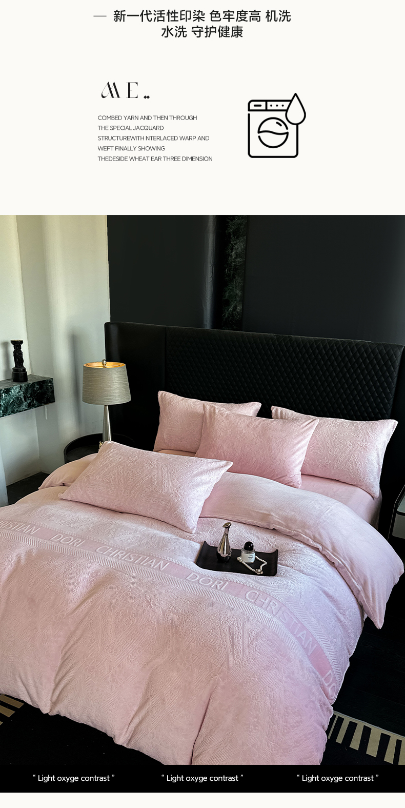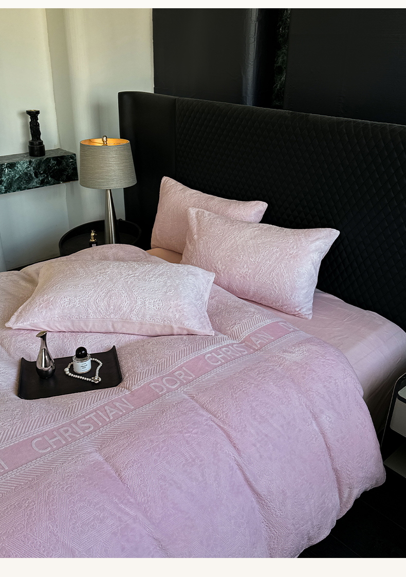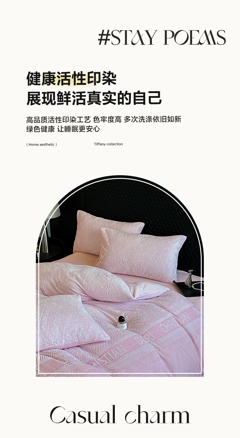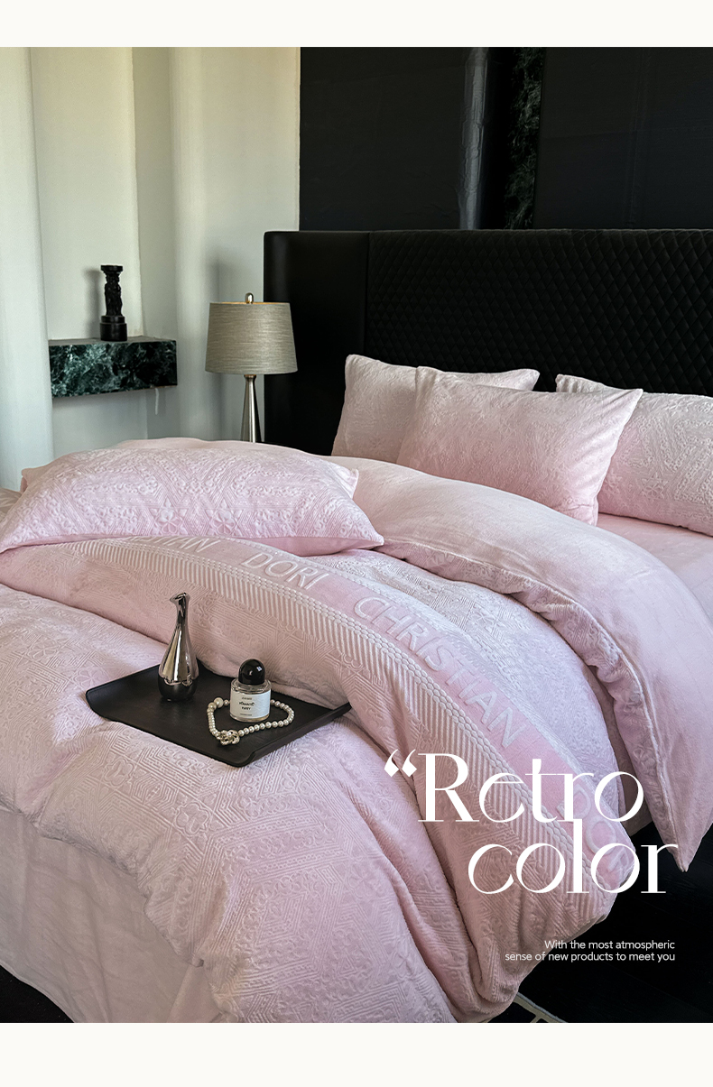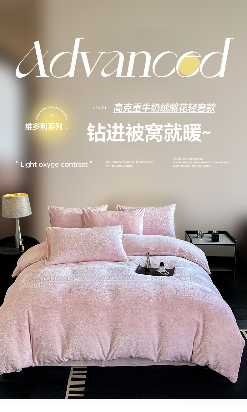 当前位置: 91家纺网 > 商品网购 > 床品套件 > 四件套 > 牛奶绒四件套 > 莱登卡奴 2024新款高克重牛奶绒雕花轻奢款四件套-维多利系列 繁花冰莓粉