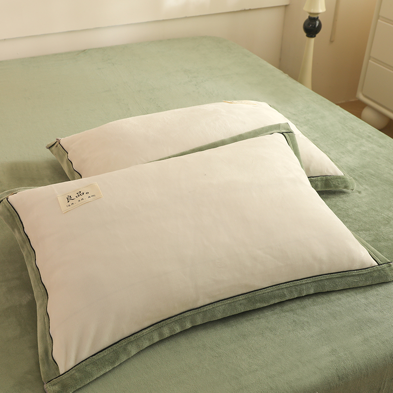 2025新款A类加厚牛奶绒大包边系列-单枕套 米白+浅绿