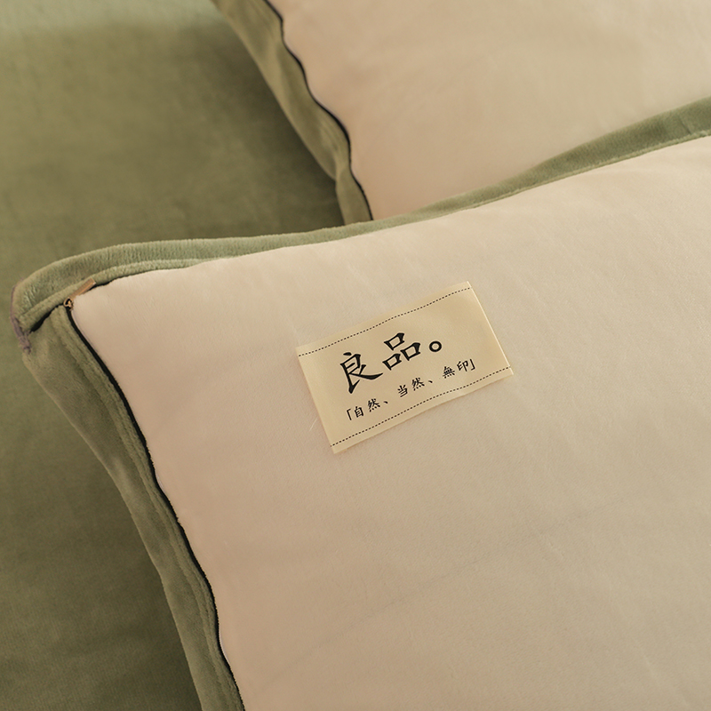 商品名称:2025新款A类加厚牛奶绒大包边系列-单枕套 米白+浅绿