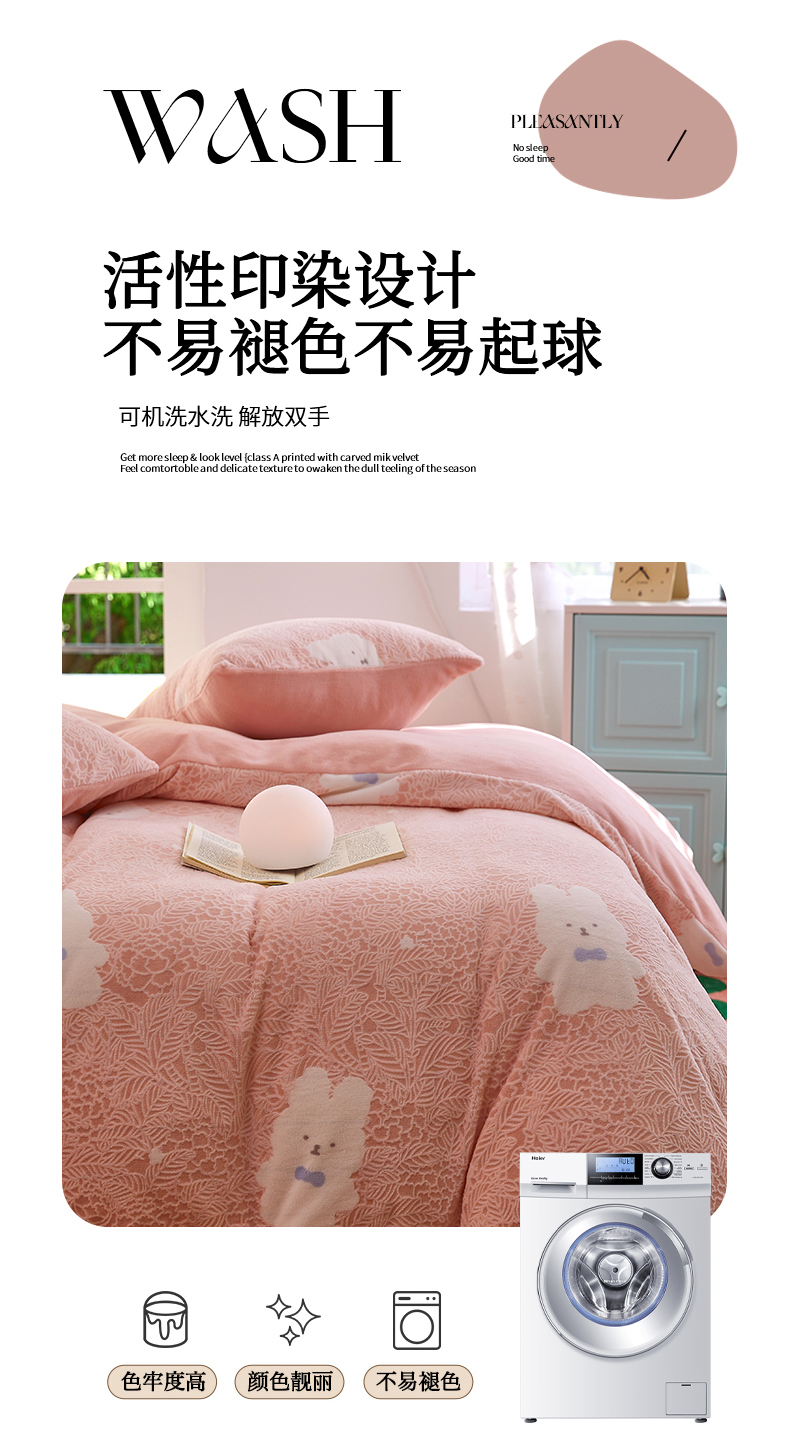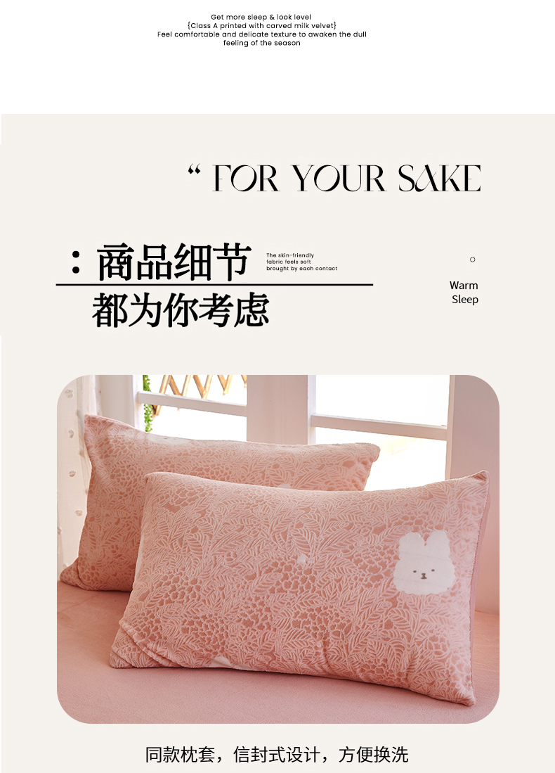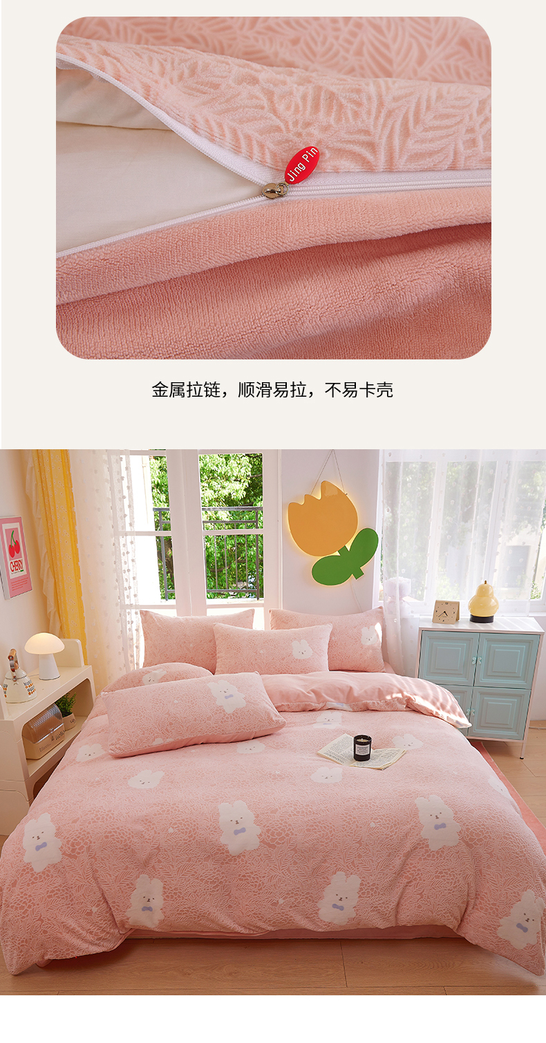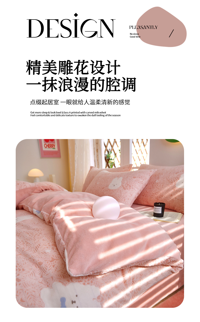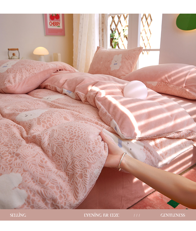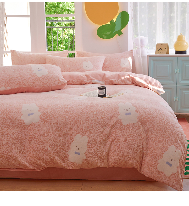 当前位置: 91家纺网 > 商品网购 > 床品套件 > 四件套 > 牛奶绒四件套 > 菡宝 2024新款雕花绒230g全消光牛奶绒四件套及单品 - 四件套 邦尼兔粉