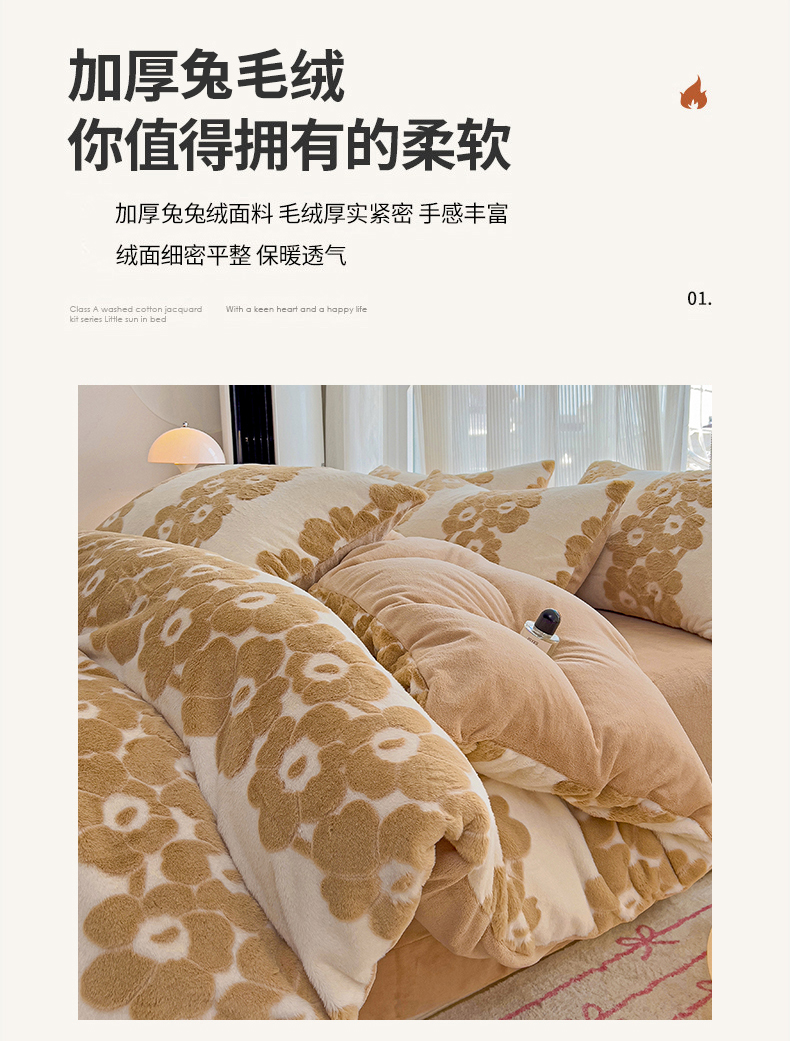 商品名称:忆生活 2024新款兔兔绒雕花牛奶绒四件套 微微