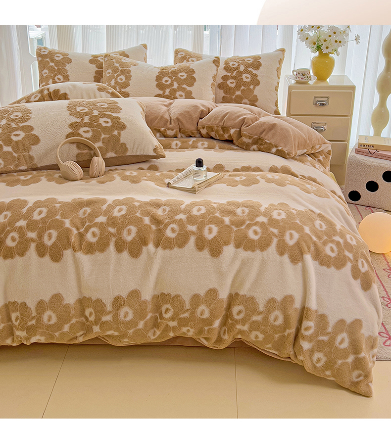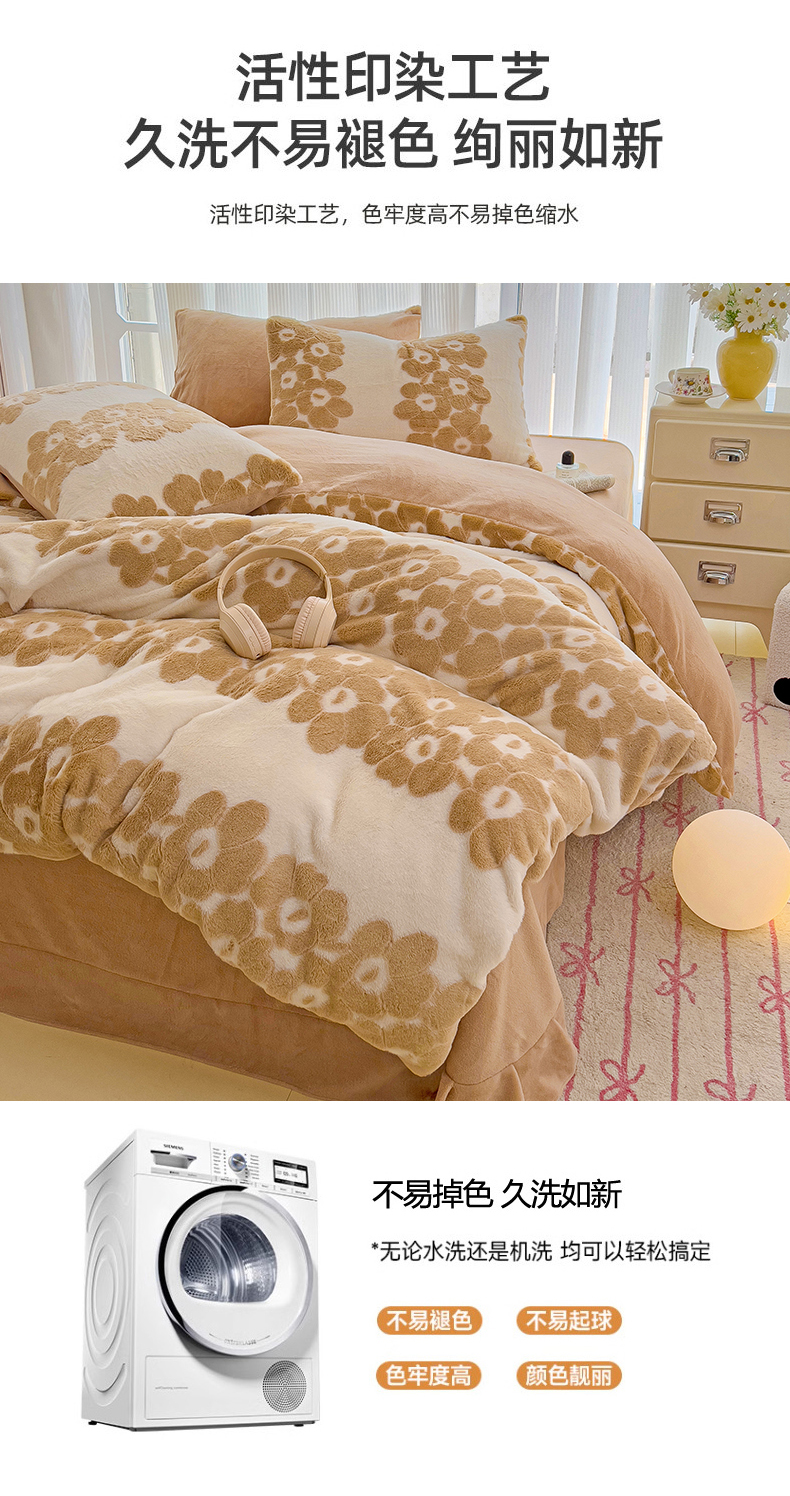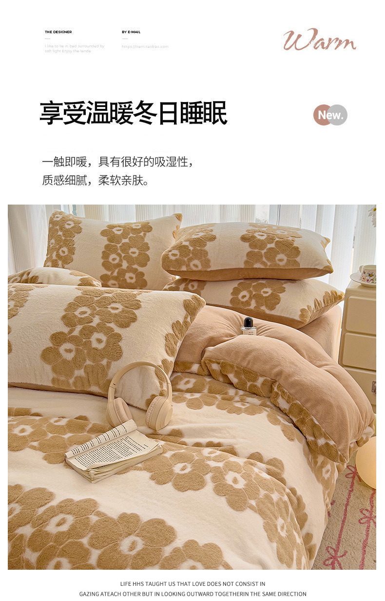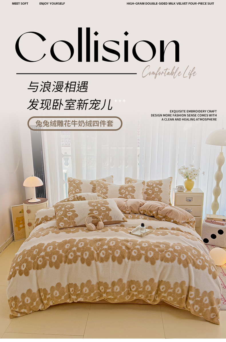 忆生活 2024新款兔兔绒雕花牛奶绒四件套 微微