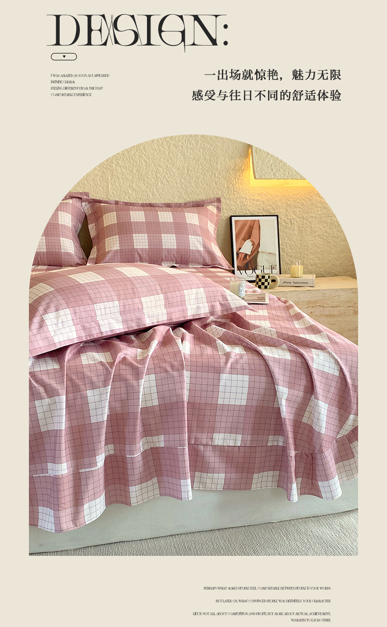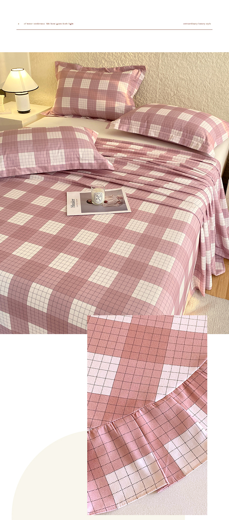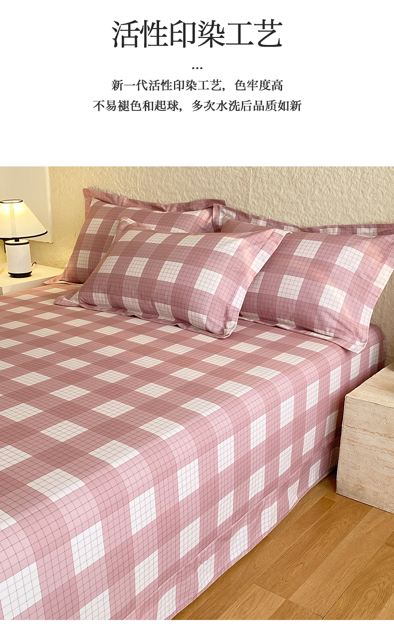 凯磊 2024新款AB版.生态磨毛印花系列单床单 粉格子