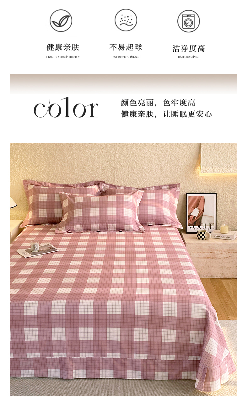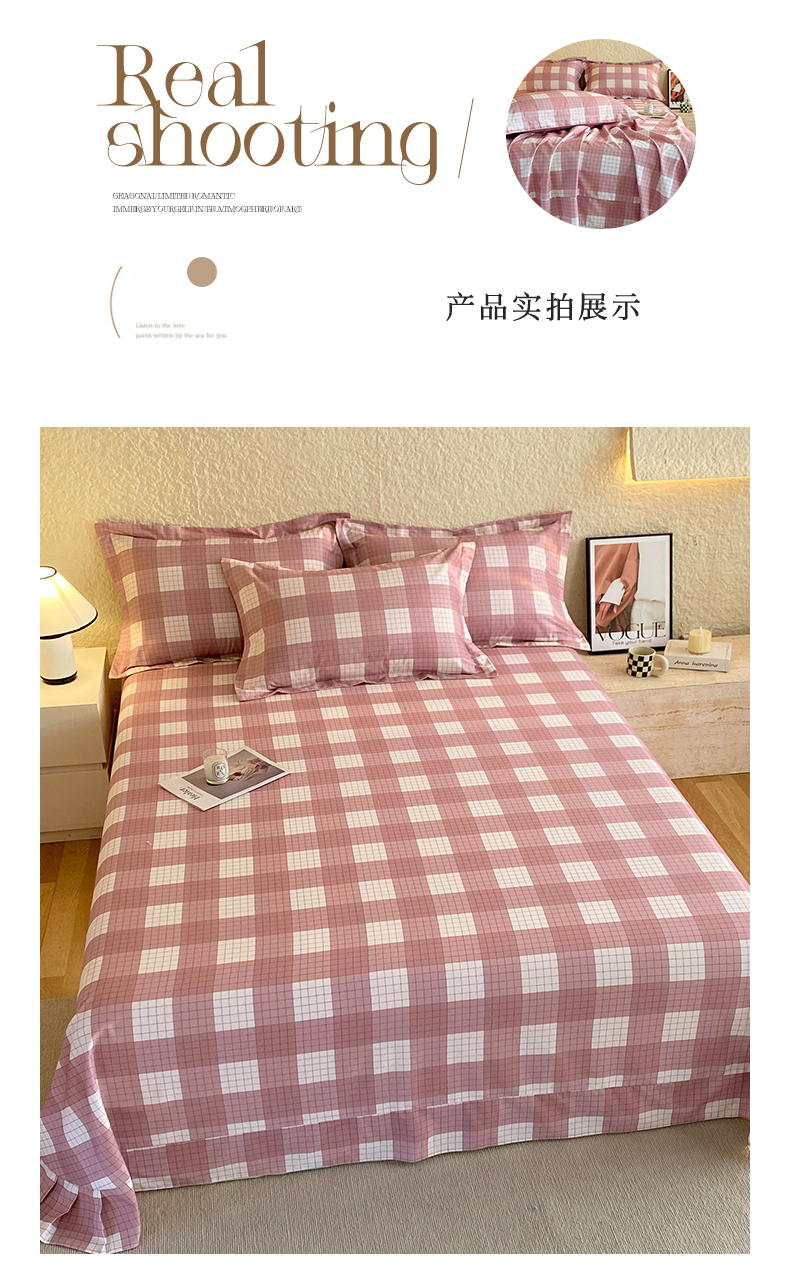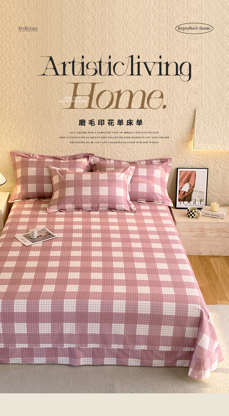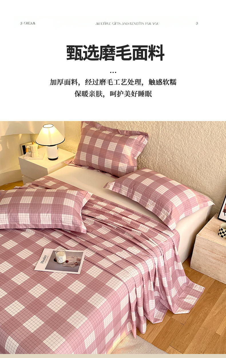 商品名称:凯磊 2024新款AB版.生态磨毛印花系列单床单 粉格子