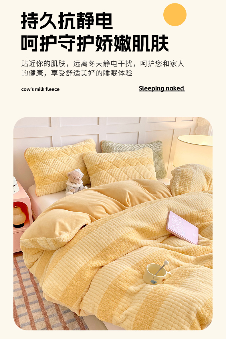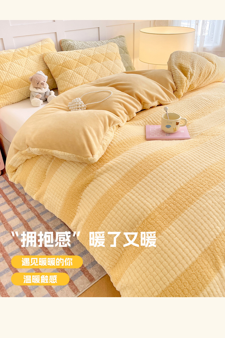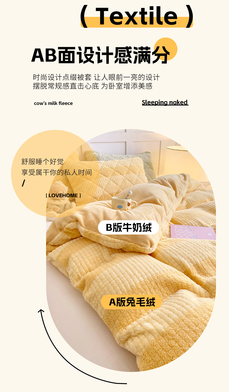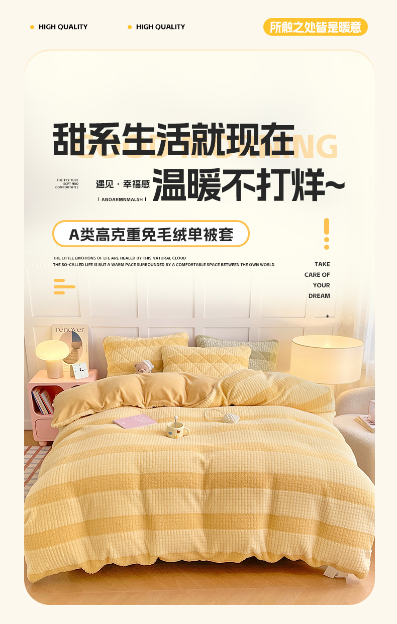 商品名称:福来临家纺 2025新款高克重兔毛绒被套 兔毛被套-奶油黄