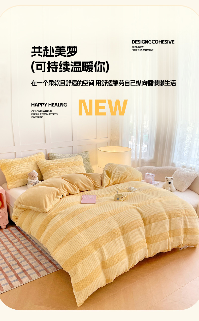 福来临家纺 2025新款高克重兔毛绒被套 兔毛被套-奶油黄