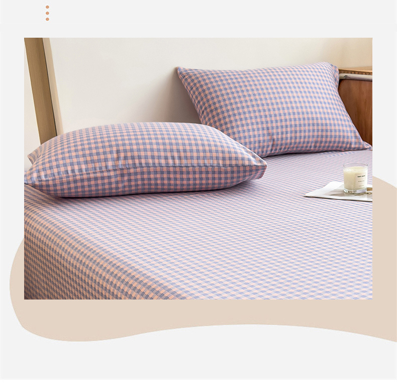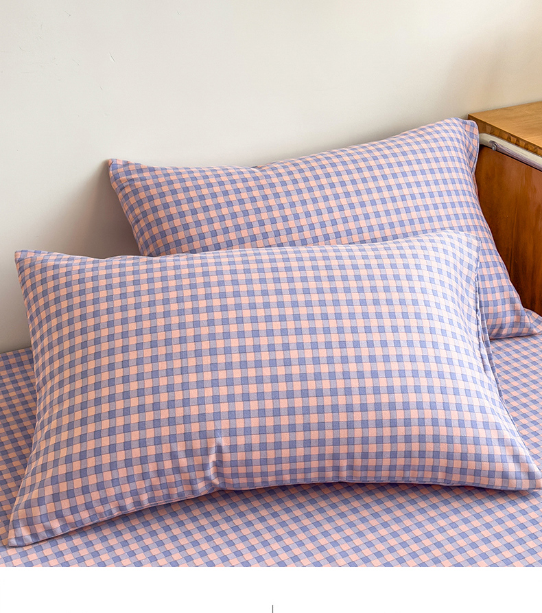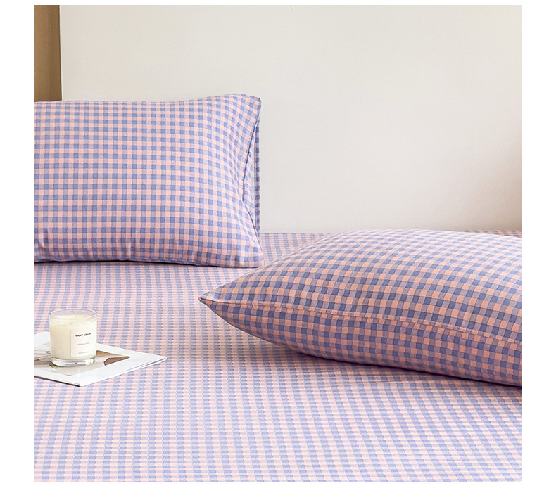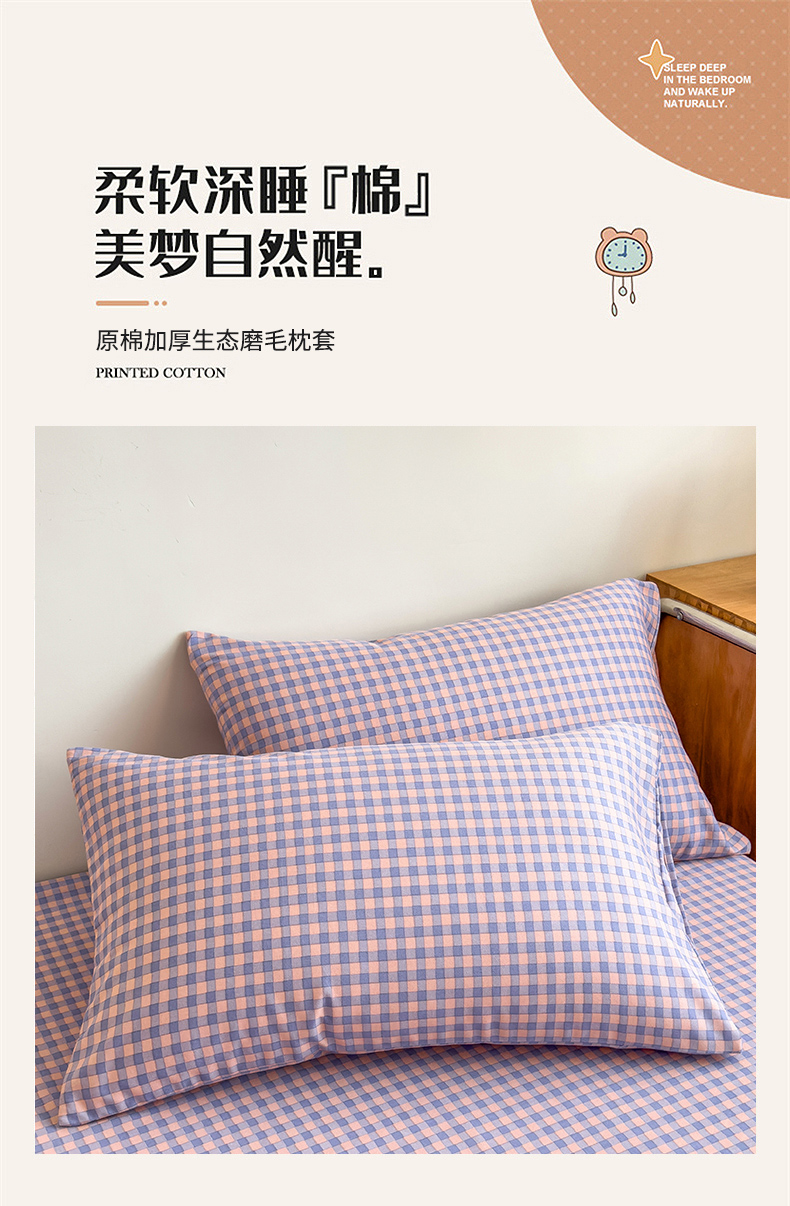 芃成家纺 2024新款原棉加厚生态磨毛单枕套 幸运小格-紫粉